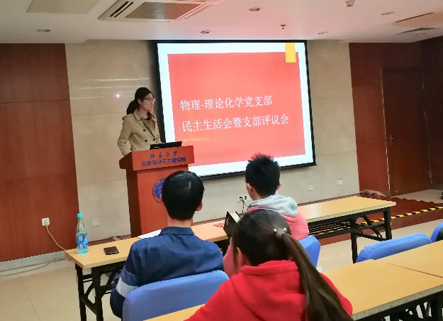 为进一步发扬党的优良传统,保持党支部全体同志的先进性,北京大学化学与分子工程学院物理-理论化学学生党支部于2018年3月31日晚上6点30分在化学院A717开展民主生活会及党支部评议考核。此次会议由党支部书记高智悦同志主持,有21