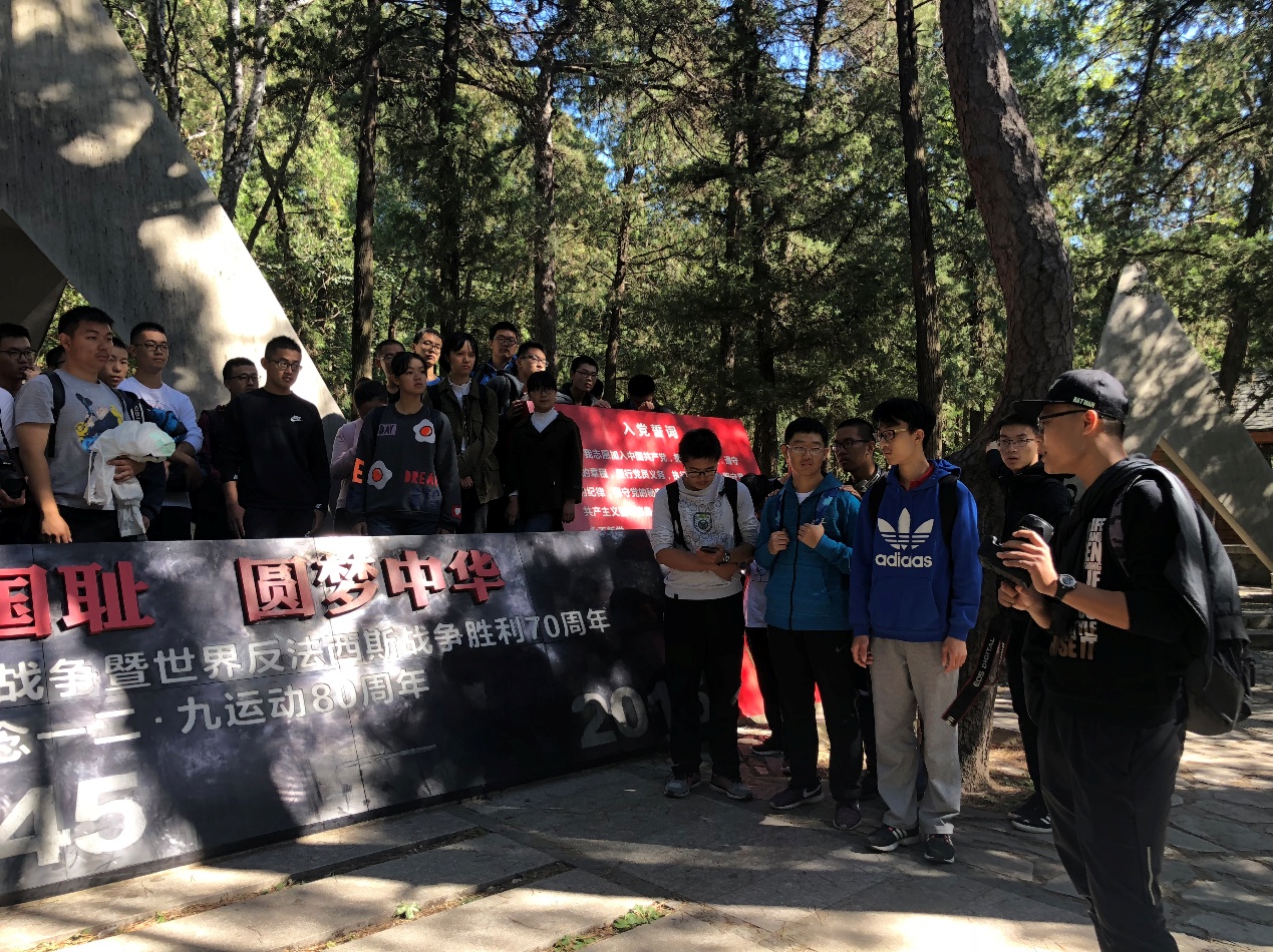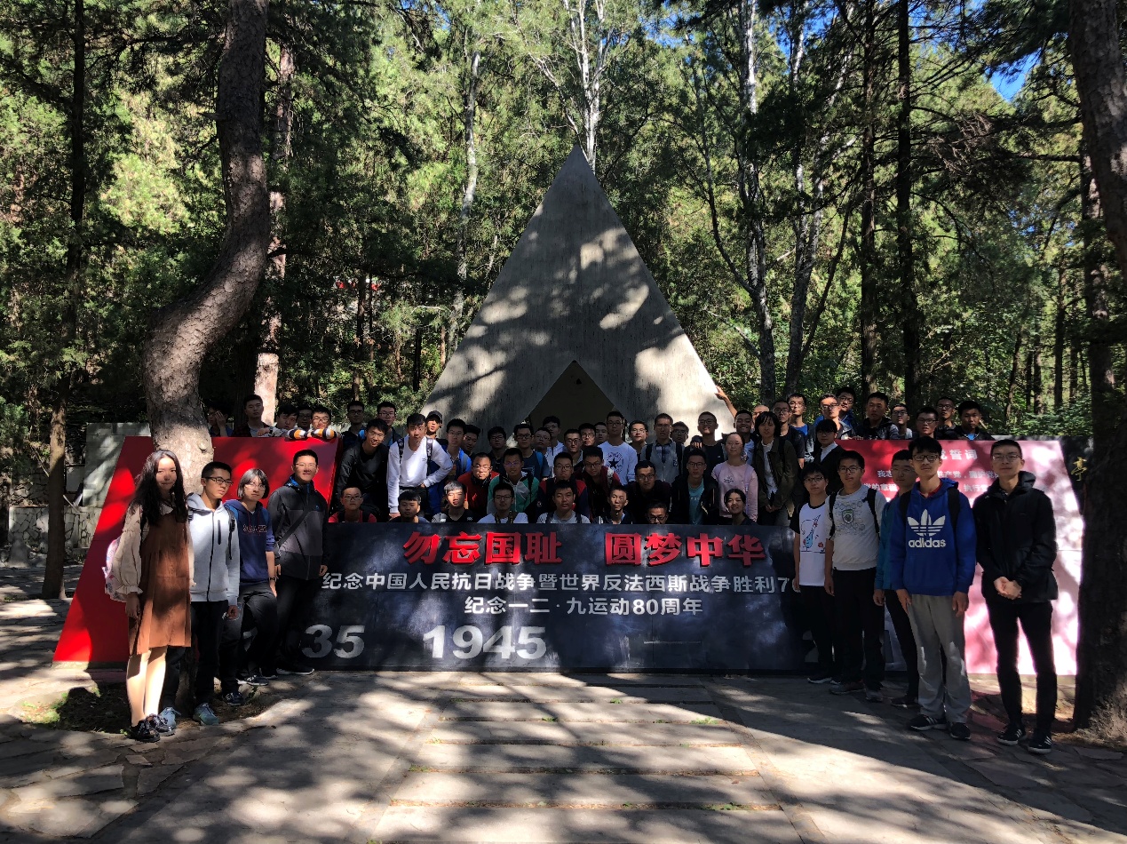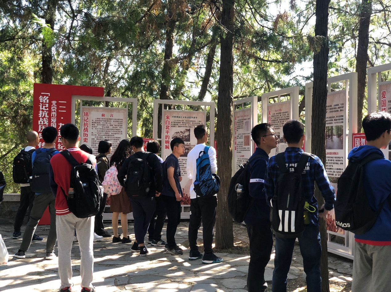 上午9时,全体参观人员到达北京市植物园,朝着“一二·九”运动纪念亭所在地樱桃沟前进。到达纪念亭后,班主任刘泽宇向同学们详细讲述了“一二·九”运动的历史。
