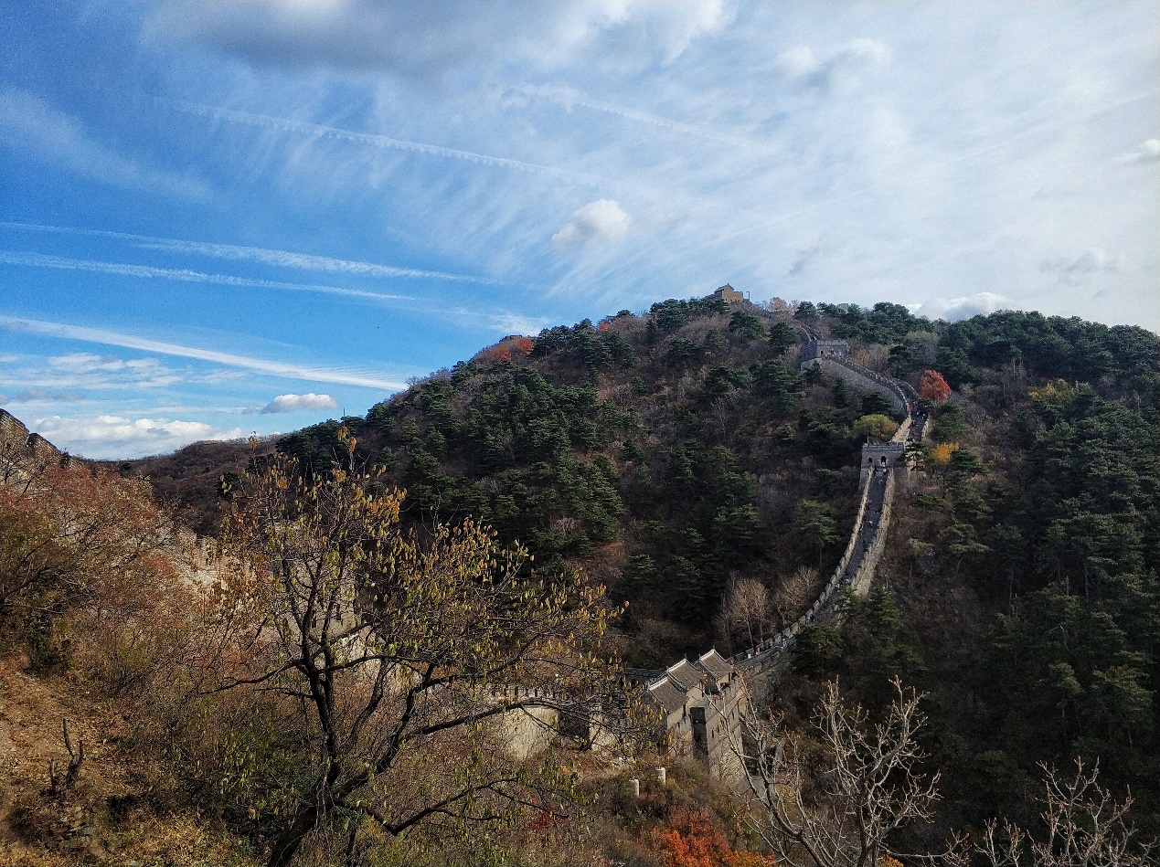 上午10时,党支部一行人抵达慕田峪长城脚下,映入眼帘的是连绵起伏的青山,火红的团簇点缀其间,而长城则仿佛一条巨龙,隐于层林,又立于山脊。同志们兴致高昂,三三两两组队前行,登山不易,彼此扶持,在攀登过程中不时欣赏沿途壮阔的风景。当登上长城后,眼前的景致又与登山时所览大不相同:横望,是连绵起伏的长城,纵看,是如油画般的金秋盛景。