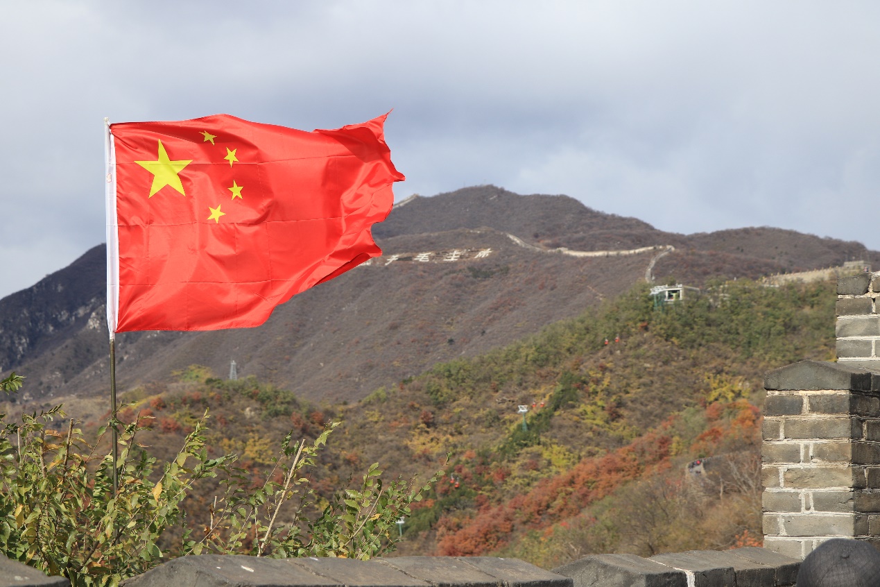 图三:迎风飘扬的五星红旗