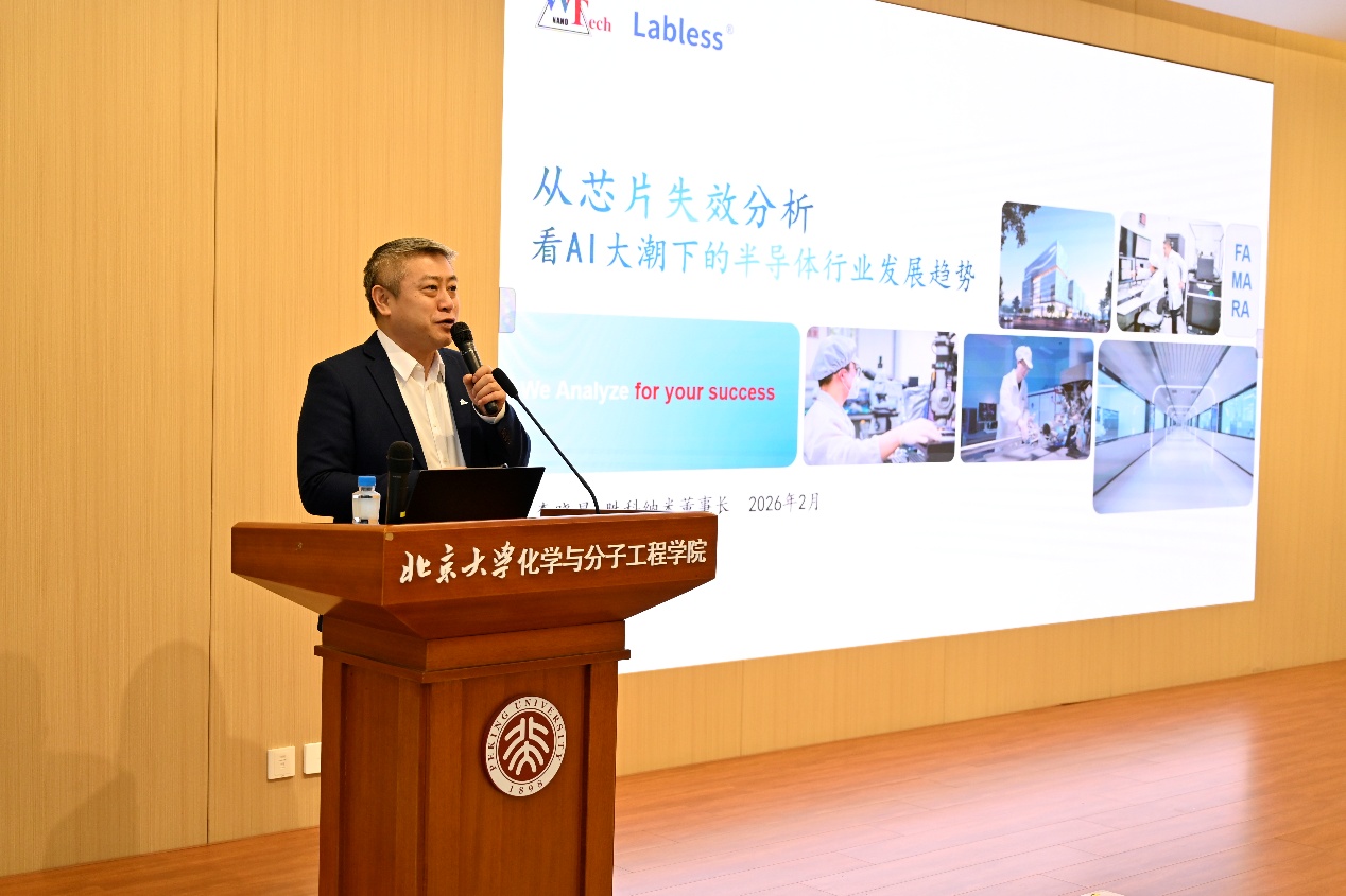 3月6日,“花园公开课”第一讲正式开讲。优秀校友、胜科纳米(苏州)股份有限公司董事长李晓旻受邀担任首讲嘉宾,以《从芯片失效分析看AI大潮下的半导体行业发展趋势》为题作专题讲座。化学与分子工程学院副院长陈继涛,党委副书记邓安琪,胜科纳米科技(北京)有限公司常务副总经理乔明胜及超百名校内师生参与了本次讲座。讲座由化学与分子工程学院院长彭海琳主持。