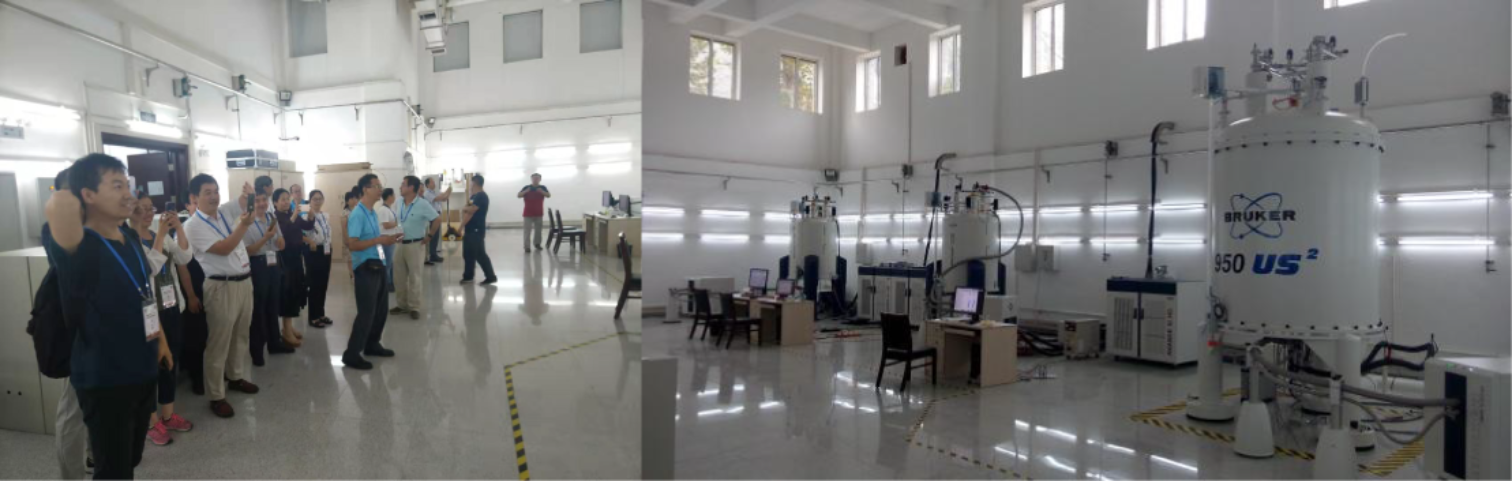 下午的报告结束后,南开大学来访的16位老师在金长文教授的带领下,参观了北京核磁共振中心。北京核磁共振中心最初是由国家科技部、教育部、中国科学院和总后卫生部共同投资,依托于北京大学建立的国家公用大型仪器设备开放实验室。之后,蛋白质科学研究(北京)国家重大科技基础设施核磁共振平台也加入北京核磁共振中心。目前中心拥有10台液相核磁共振谱仪,其中有我国唯一一台最高场的950MHz液相核磁共振谱仪、我国首台高场高分辨率800MHz液相核磁共振谱仪和首台固液共用的800MHz核磁共振谱仪。另有一台600MHz宽腔固相核磁共振谱仪、三台600MHz液相核磁共振谱仪、一台500MHz和一台400MHz液相核磁共振谱仪。