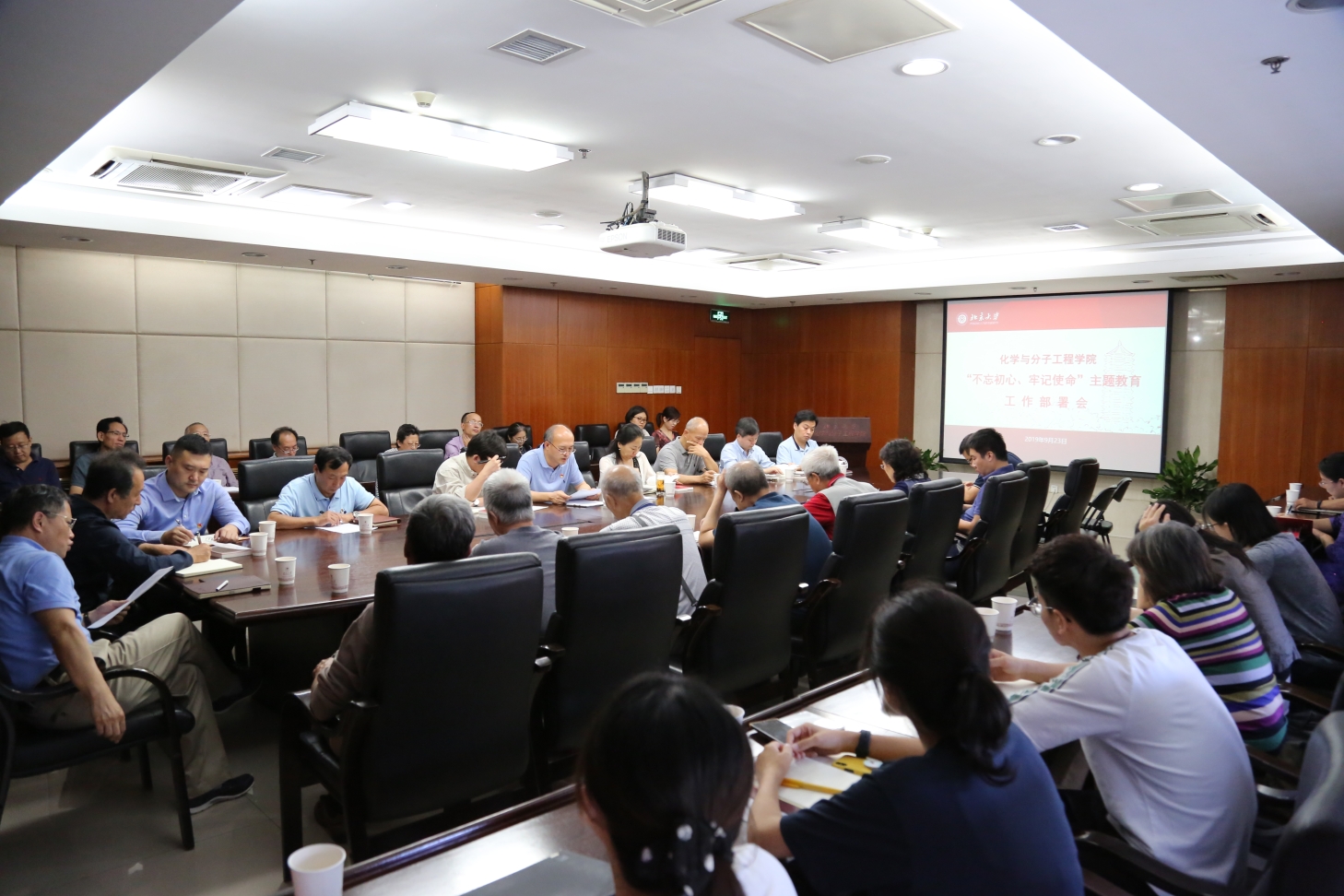 为传达学习习近平总书记在“不忘初心、牢记使命”主题教育工作会议上的重要讲话精神,落实北京大学关于在全校开展主题教育活动的战略部署,化学学院“不忘初心,牢记使命”主题教育工作部署会于9月23日下午2点在化学学院A205召开。北京大学“不忘初心、牢记使命“第一指导组组长刘宝栓、联络员郭京京,化学学院党委书记马玉国、院长陈兴,学院党政领导班子成员、党委委员、各党支部书记、系所中心负责人、工会主席及师生代表等出席会议,会议由马玉国主持。