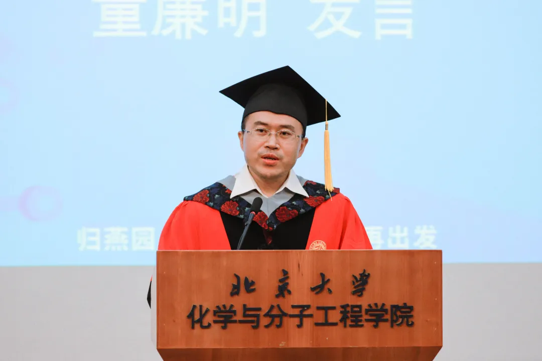 学院1998级校友、斯坦福大学化学系副教授夏岩与1986级校友、盛世泰科生物医药技术有限公司首席执行官余强分别致辞。夏岩通过分享自己的科研历程,鼓励大家要设定远大目标,同时坚持把小事做好,在前所未有的危机前展现出责任感和领导力,用科学、求实、进步的北大精神影响社会不同角落的人。余强以《因为热爱,活出精彩》为题,介绍了自己在化学道路上的摸索与从事医药研究的始末,他说,在老百百姓的眼里,北大给人以希望,其实这更是北大人的责任。