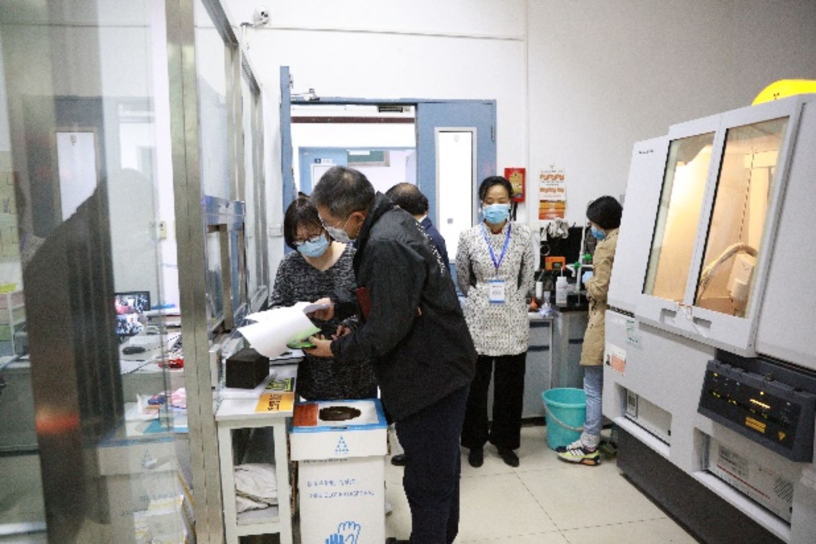 图3.监督检查组专家检查粉末衍射实验室