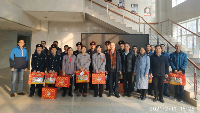 2021年02月11日下午,时值中国传统节日农历辛丑年春节的“年三十”,化学学院党委书记马玉国、副书记赵美萍、王菲、副院长吕明泉、陈继涛、工会主席杜福胜等一行慰问了春节期间坚守在工作岗位的保安、保洁、水电维护、中控室及试剂库等值班人员和除夕夜值班老师,为他们送去了喜庆的慰问礼包。为了方便保安及部分物业保障人员的餐饮,院里还为他们购置了冰箱和微波炉。