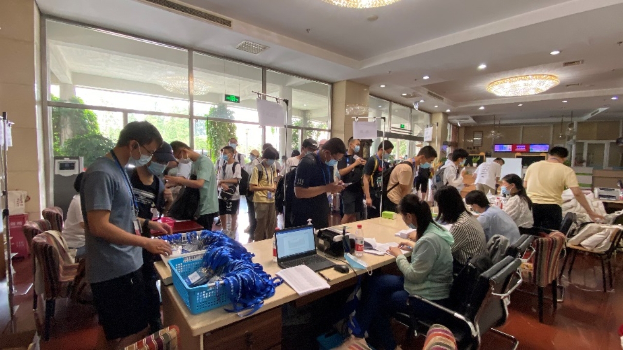 7月25日下午,营员们在北京大学万柳公寓服务大厅报到并领取相关资料。暑期课堂期间,有专门班车接送营员们往返主校区和万柳公寓,方便快捷安全。