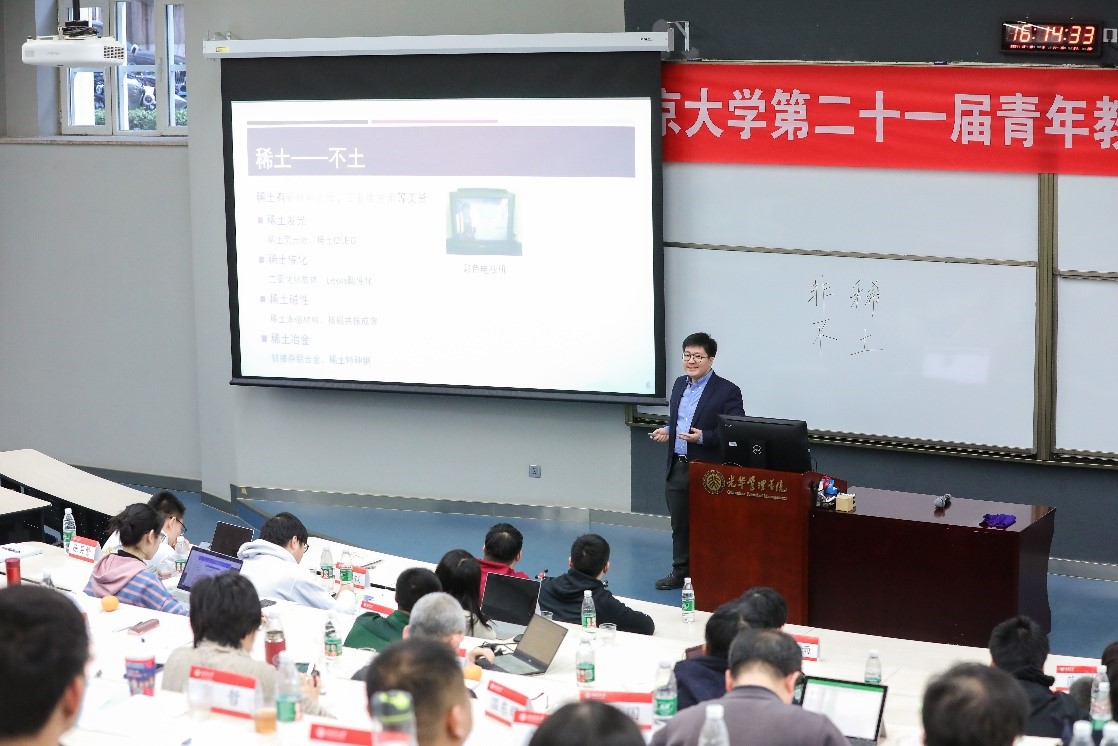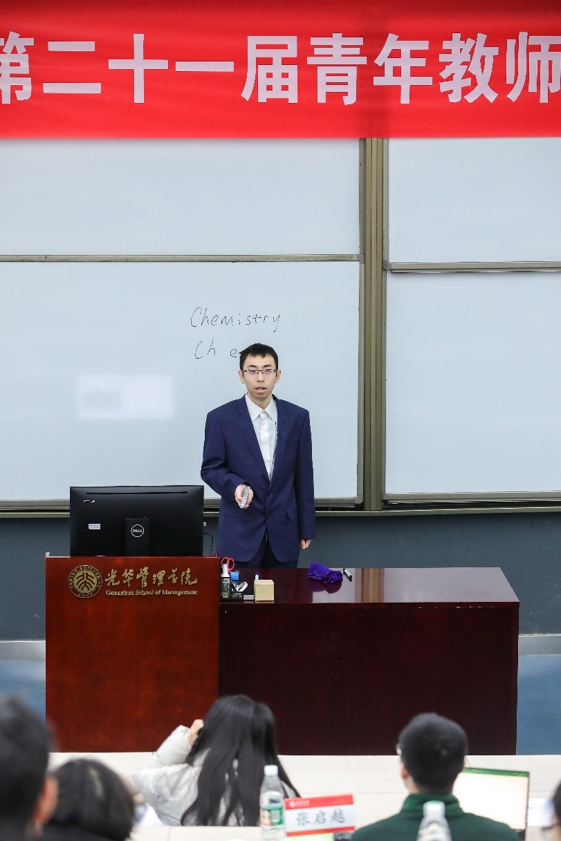 北京大学第二十一届“青年教师教学基本功比赛”理工科类(青教赛)于2021年12月18日在光华管理学院大教室举行。化学学院推荐的参赛教师在此次比赛中表现突出,再创佳绩!李晨老师荣获理工科类一等奖,在29位参赛教师中总分位列第一;同时他还获得了优秀教案奖和最佳教学演示奖。黄闻亮老师荣获理工科类二等奖,并获得优秀教案奖和最受学生欢迎奖。来鲁华和朱月香二位老师获得了优秀指导教师奖。在此祝贺获奖的教师,他们在比赛中展现出了化学学院教师扎实的教学基本功和优秀的教学风采。