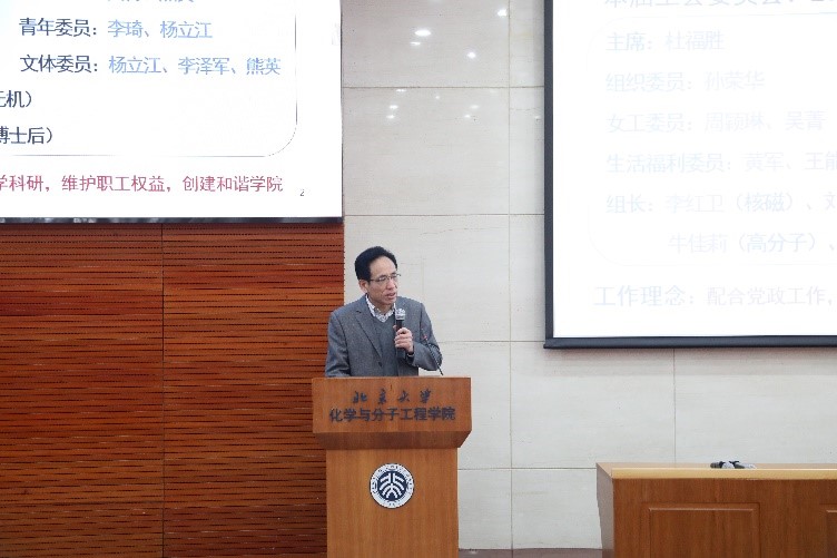 2022年1月7日,北京大学化学与分子工程学院第三届二级教代会第三次全体会议在化学学院A204报告厅召开。学院党委书记马玉国、党委副书记赵美萍、副院长吕明泉、二级教代会执委会主任委员甘良兵、工会主席杜福胜以及来自各系所的教代会代表等近40人出席了大会,会议由甘良兵主持。