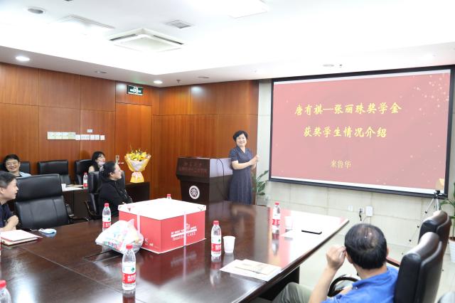 观毕短片,物理化学研究所来鲁华所长向大家介绍了“唐有祺-张丽珠奖学金”执行情况。2020年唐先生百岁生日之际,唐先生以自己和夫人、中国试管婴儿之母张丽珠教授联名在北京大学基金会设立奖学金,旨在奖励积极投身化学和医学的北大优秀学子。2022年春,该奖学金首次发放,来自北京大学化学学院和北京大学医学部的10位优秀本科生获得该项奖励。获奖学生们在致谢信中动情地表达了自己从唐先生和夫人献身我国科教和医学事业的事迹中受到的鞭策和激励,并祝福先生身体健康。
