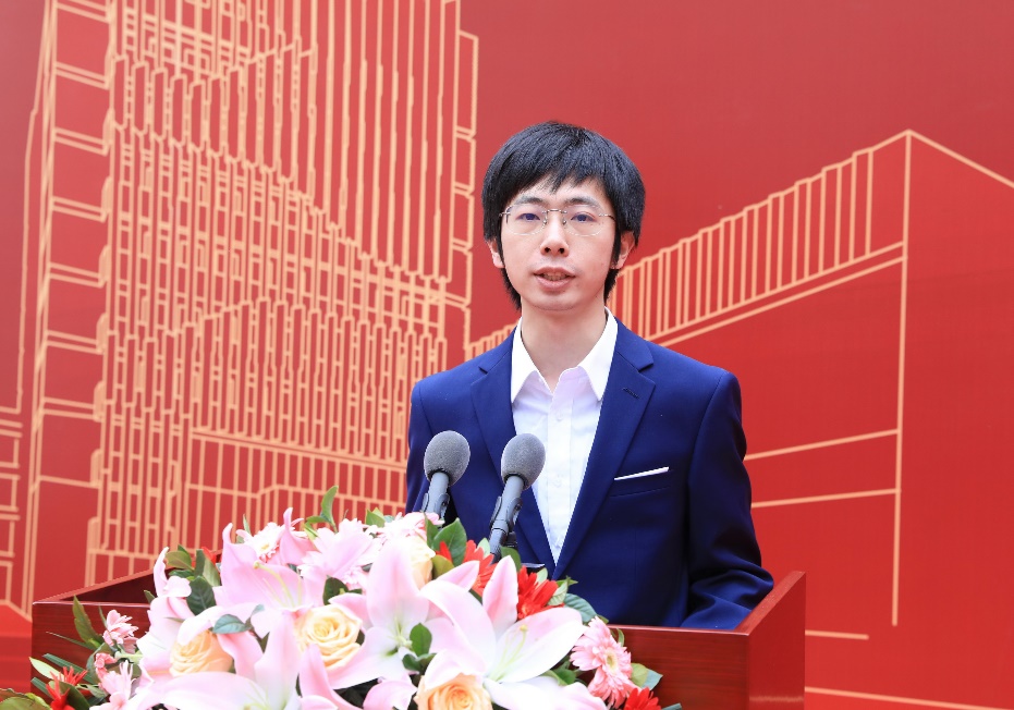 化学学院2014级本科生、2018级博士生余子迪代表全体化学学院学生感谢厉伟师兄和各位校友的热心捐资助力,感谢学校领导、各部门和学院老师为改善学习科研条件所付出的辛劳。他亲眼见证了从101大教室和老C区到现在C区新大楼的新旧交替,崭新的C区化学大楼为同学们提供了全新的现代化设施和宽敞的学习实验空间。同学们也将把先辈们的精神带到新楼中,继续在化学道路上追逐梦想,与学院一起揭开北大化学学科发展的新篇章。