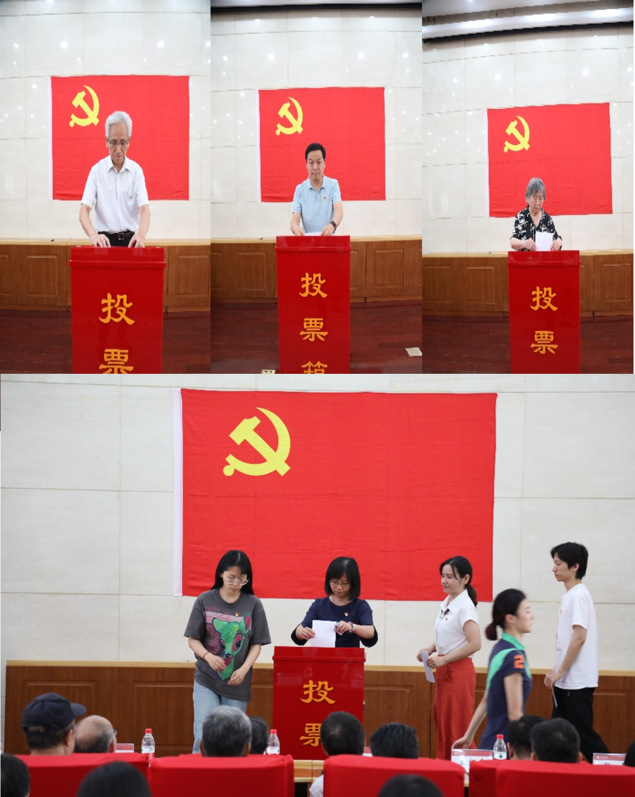 大会随后进行新一届党委的选举工作,学院工会主席杜福胜作为总监票人主持大会选举,并作为党员代表带头投下了自己的选票。