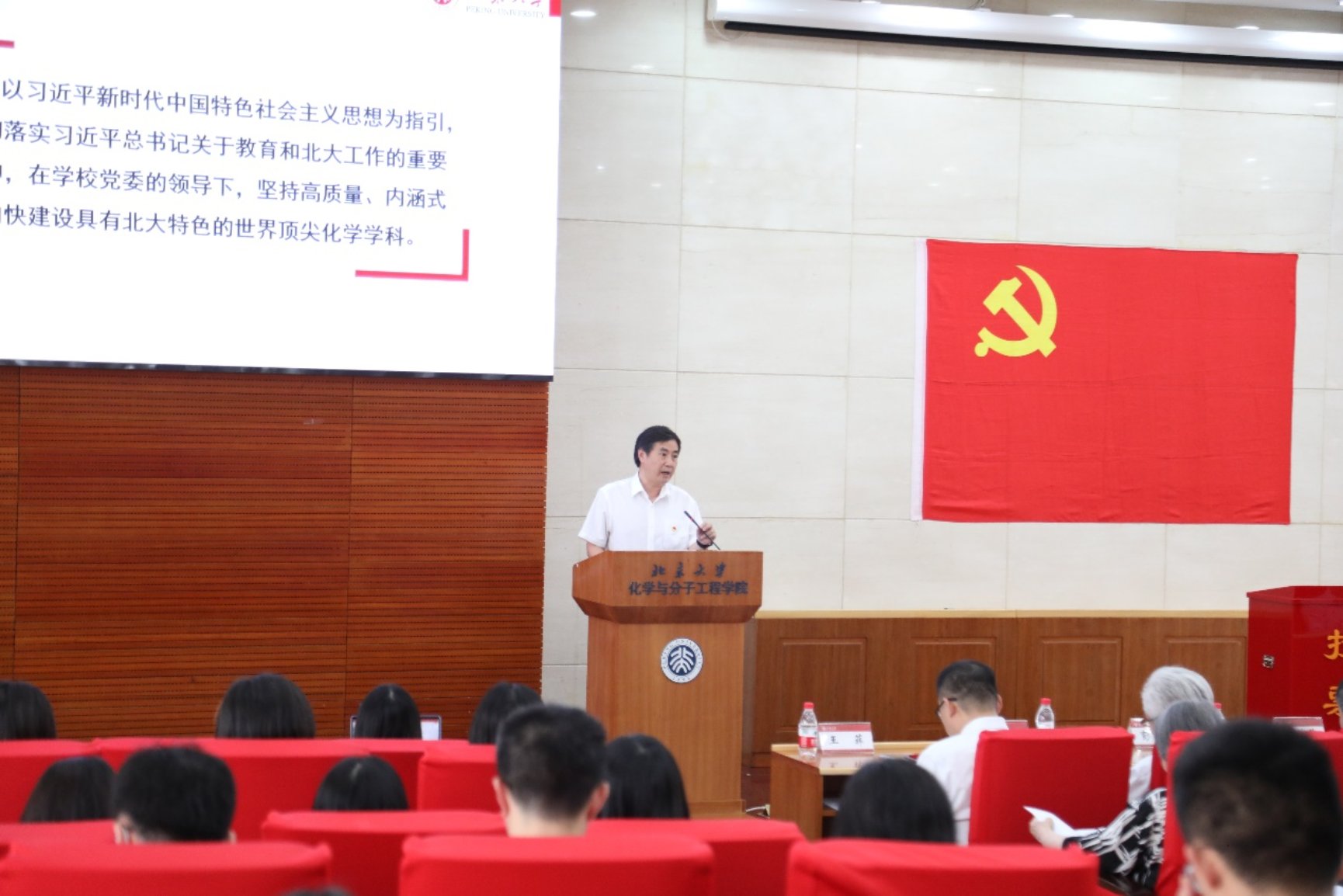 2023年6月初,化学学院党委换届工作正式启动。6月23日下午,中国共产党北京大学化学与分子工程学院委员会党员代表大会在北京大学化学与分子工程学院A204会议室召开。大会听取并审议了学院党委工作报告,投票选举产生了中共北京大学化学与分子工程学院委员会新一届委员。北京大学党委组织部常务副部长吴艳红出席大会,化学学院副院长彭海琳、甘良兵、吕明泉作为学院特邀党外人士列席大会,学院党委副书记王菲主持会议。