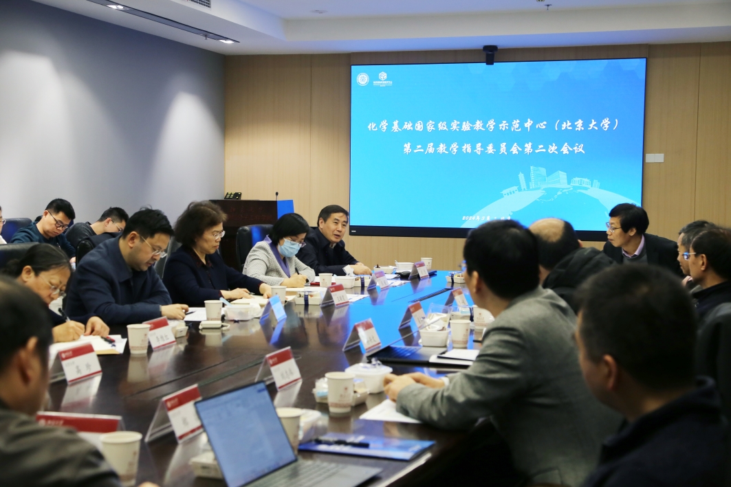 3月16日上午,化学基础国家级实验教学示范中心(北京大学)第二届教学指导委员会第二次会议在北京大学化学与分子工程学院CB213会议室顺利召开。本届教学指导委员会由朱成建教授(南京大学)、朱亚先教授(厦门大学)、李一峻教授(南开大学)、梁永民教授(兰州大学)、复旦大学孙兴文教授(复旦大学)、裴坚教授和李维红教授(北京大学)七位专家组成。北京大学教务部副部长方哲宇、实验室与设备管理部综合办公室主任张媛、化学学院教学副院长王颖霞(兼示范中心主任)、党委副书记高珍、普通化学实验(校本部)课程主持人郑捷、普通化学实验(医学部)课程主持人刘志伟、定量分析实验课程主持人朱志伟、有机化学实验课程主持人张奇涵、物理化学实验课程主持人吴忠云以及示范中心全体老师参加了本次会议。