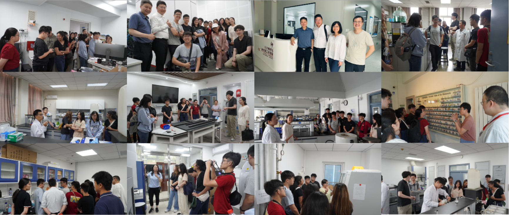 下午,张基汉同学带领访学团走进王欢老师的科研实验室、化学基础实验教学中心与北京大学分析测试中心,体验科研和教学实验的魅力。参观实验教学中心时,定量分析实验课程的主讲老师朱志伟介绍了正在进行的自动滴定实验;马锴果、马艳子、徐金荣、关玲和黄军五位老师分别从不角度介绍了实验实践的情况,大家听得饶有兴趣;几位正在进行综合创新实验的本科生展示了自己搭建的实时在线反应监测仪器和软件,引得访学团的学生们连连赞叹。在分析测试中心,周文、苏婕、鞠晶三位老师分别介绍了质谱、X射线衍射、电子显微镜等高端仪器设备及其在科学研究中的应用,访学团的学生们大开眼界;与此同时,高炜博老师跟随彭海琳老师参观了分子材料与纳米加工实验室,并了解了公共平台在科研服务与支撑方面的运作模式。