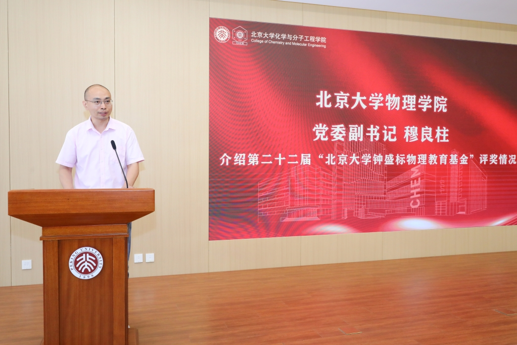 2024年6月20日下午,第十八届“北京大学钟陈玉蘭基金”颁奖典礼、第二十二届“北京大学钟盛标物理教育基金”在北京大学化学与分子工程学院肖伦报告厅(101大教室)举行。北京大学钟盛标物理教育基金、钟陈玉蘭基金捐赠人夏晓峦与多位亲友、兄弟院校代表线上出席,钟赐贤和夏晓峦的亲属夏慧娴,北京大学教育基金会副秘书长赵琳,教育基金会欧美事务部副部长陶娟,物理学院党委副书记穆良柱,化学与分子工程学院党委副书记邓安琪以及获奖的师生代表、相关学院负责人现场出席了本次活动。颁奖典礼由化学学院专职辅导员陈舒萍主持。