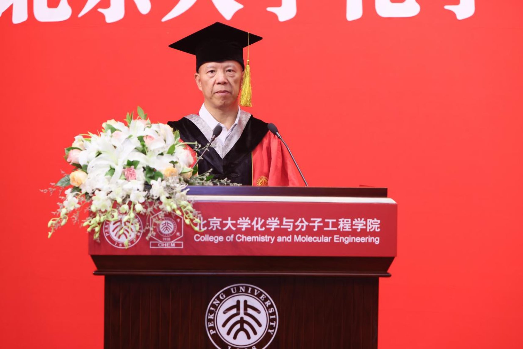 教师代表刘志博教授向各位毕业生学子表达了真挚的祝贺,希望毕业生能够抓住未来几年承上启下的关键时期,走出自己的探索之路。作为化学领域的精英,更应承担起引领社会进步的责任,将北大的光荣传统内化于心,做与国家和民族同呼吸共命运的北大人。