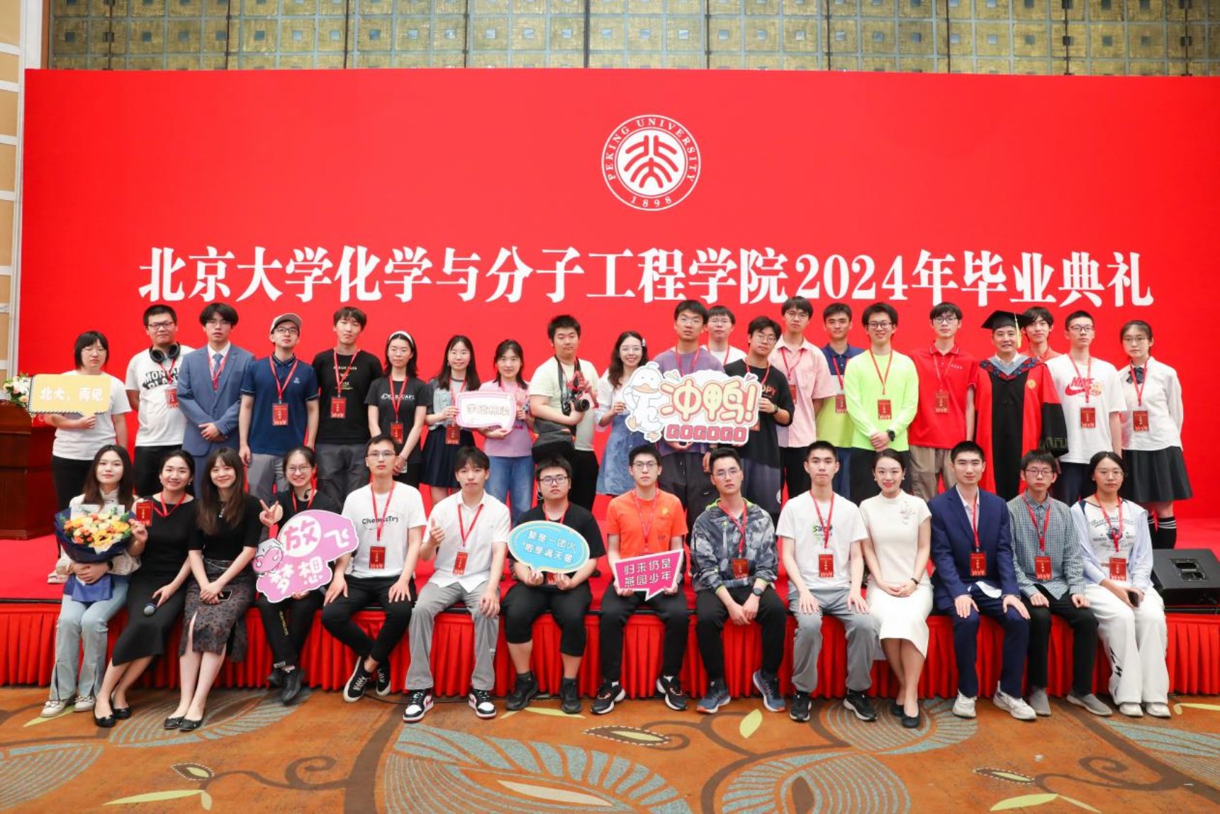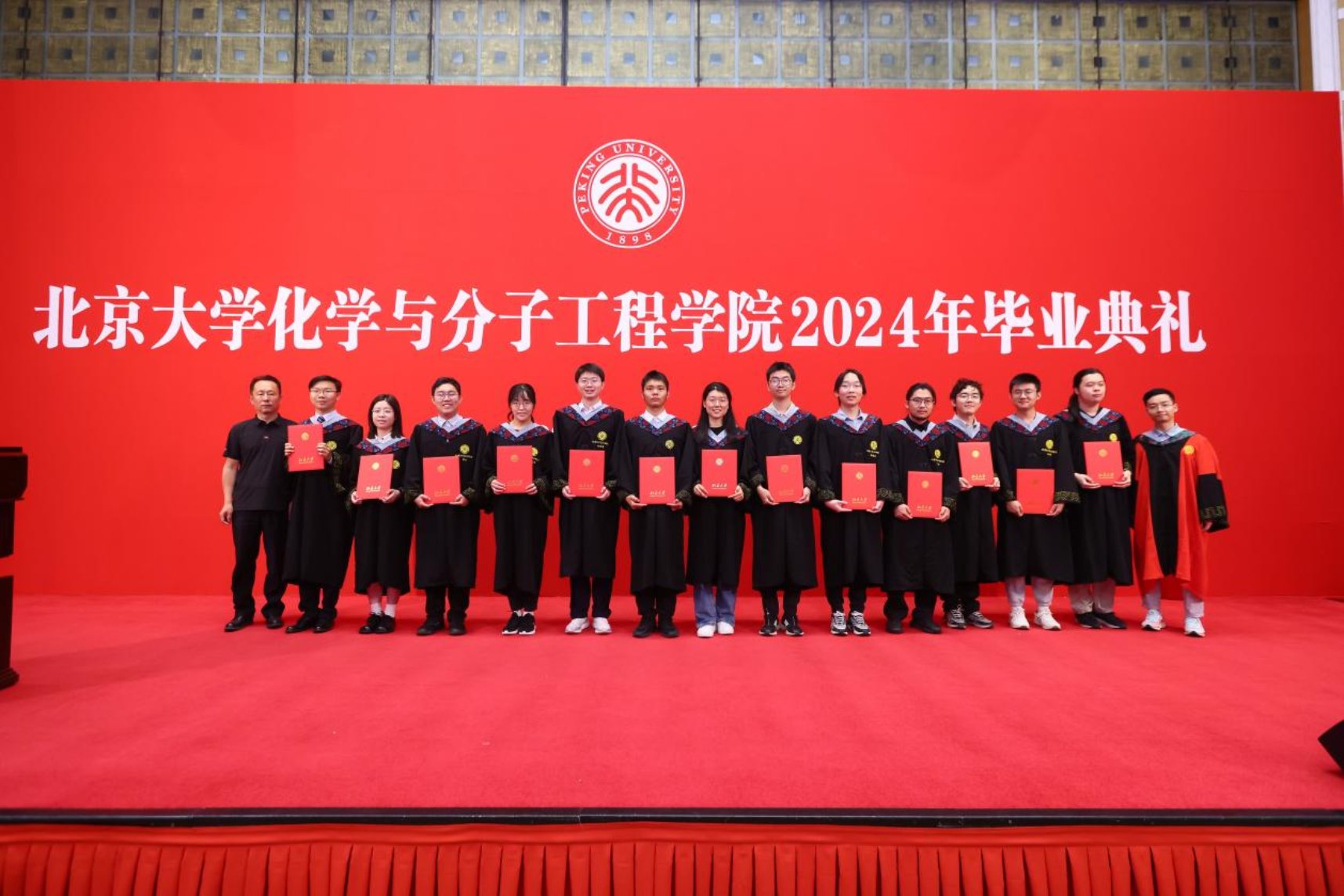 “化学之星”是化学学院设立用以奖励在本科期间品行优良、学习刻苦、成绩优异并取得一定科研成果的优秀毕业生,是学院所设立的本科生最高学术奖项。王颖霞老师现场宣读2024年本科生“化学之星”获奖名单,取得本科毕业生“化学之星”荣誉称号的同学中,有2位获得毕业生学术奖。“未名学士”是北京大学促进学生在基础学科学术研究等方面全面发展特设的荣誉奖项,化学学院有4位毕业生获得该荣誉称号。裴坚、彭海琳、邹鹏、李维红等领导老师为获奖同学颁奖。