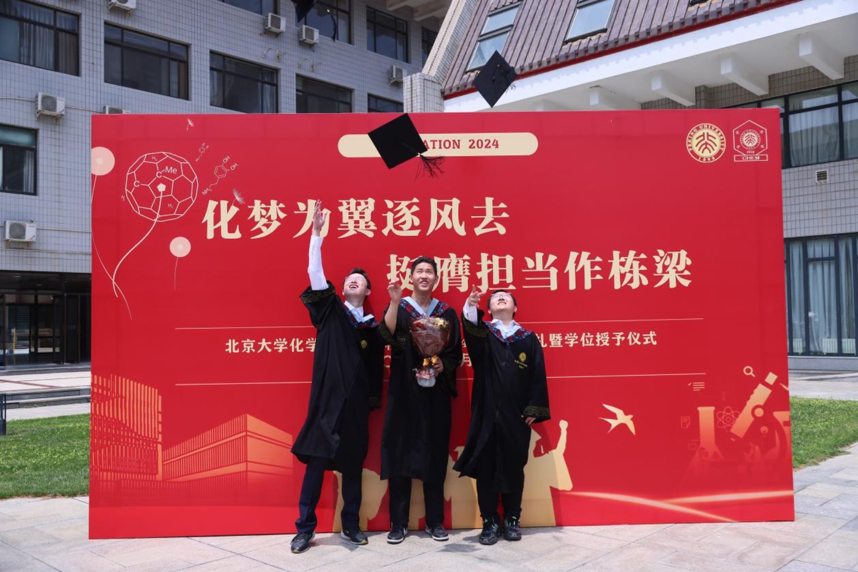 吴细兵学长在研究生毕业典礼上致辞。他用丰富具体的案例向同学们分享了自身对化学的理解,认为化学不仅仅是一门科学,更是一种能够深刻影响世界、改善人类生活的力量,他鼓励学子们相信化学的力量,相信北大化学人的力量,用化学的力量去解决实际问题,推动社会进步。雷云学长在本科生毕业典礼上致辞。他基于自身从学术殿堂走向职场创业的经历,期望大家勇于探索自己的兴趣与潜能,在实践中找到属于自己的星辰大海,并寄语同学们保持谦逊和学习的态度,在人生的道路上不断前行,不断超越,最终实现自己的人生价值。