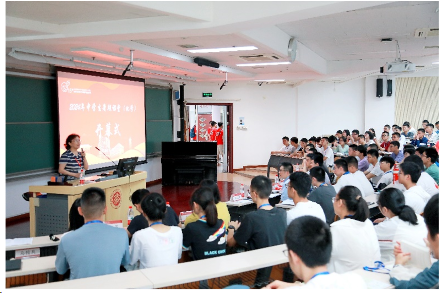 活动报到次日上午在燕园校区理教108教室,北大化学学院教学副院长王颖霞以热情洋溢的开幕词,拉开了暑期课堂的序幕。她对同学们的到来表示热烈欢迎,希望暑期课堂期间同学们用心感受北大底蕴,一起畅游化学世界,探索未来属于自己的化学天地。随后,在场师生同框合影留念。