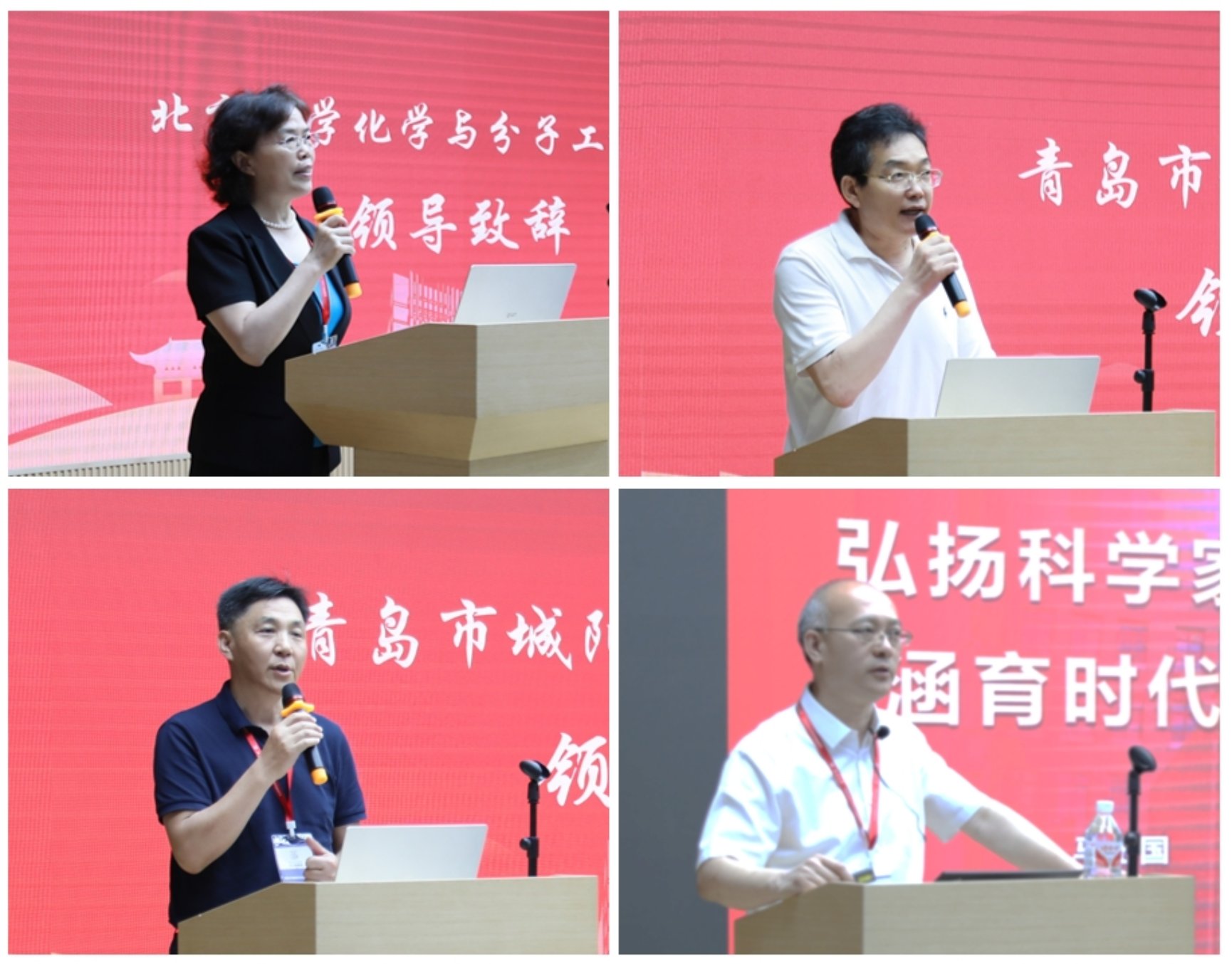 7月30日上午是研修班开幕式,北京大学副教务长、北京大学附属中学校长马玉国,北京大学化学学院副院长王颖霞、分析化学研究所教授李娜,青岛市教育科学研究院党委书记兼院长张思峰,青岛市城阳区教育事业服务中心主任苟昌革,青岛市城阳区教育和体育局教研室主任韩同欣,北京培文创新教育研究所所长夏兆营,青岛市城阳区实验高级中学校长蔡长春、副校长邵杰、青岛培文学校教学校长王宗强、行政校长封国应邀出席。王颖霞教授致开幕辞,表达了对中学老师们的诚挚欢迎,同时分享了我国代表队在第56届国际化学奥赛中获得4枚金牌的喜讯,也对参加研修班的中学老师们提出了育人育才的期望。青岛市教育科学研究院党委书记、院长张思峰在致辞中介绍了青岛市在拔尖创新人才培养方面所取得的成绩,真诚期盼全国各地的优秀教师多给青岛传经送宝、互相交流、共同进步。城阳区实验高级中学校长蔡长春致欢迎辞,结合近期教育改革热点话题,指出化学研修班也为中国教育教学改革提供探索助力,预祝研修班圆满成功。之后由北京大学附属中学校长马玉国老师为中学老师们作题为“弘扬科学家精神,涵育时代新人”的特邀报告,通过讲述北大化学人在科技、教育、产业等领域的卓越贡献,介绍北大附中如何用科学家精神培养具有创新意识和科学素养的新一代,诠释了科学家精神的内涵与弘扬传承。化学学院党委副书记高珍主持开幕式。