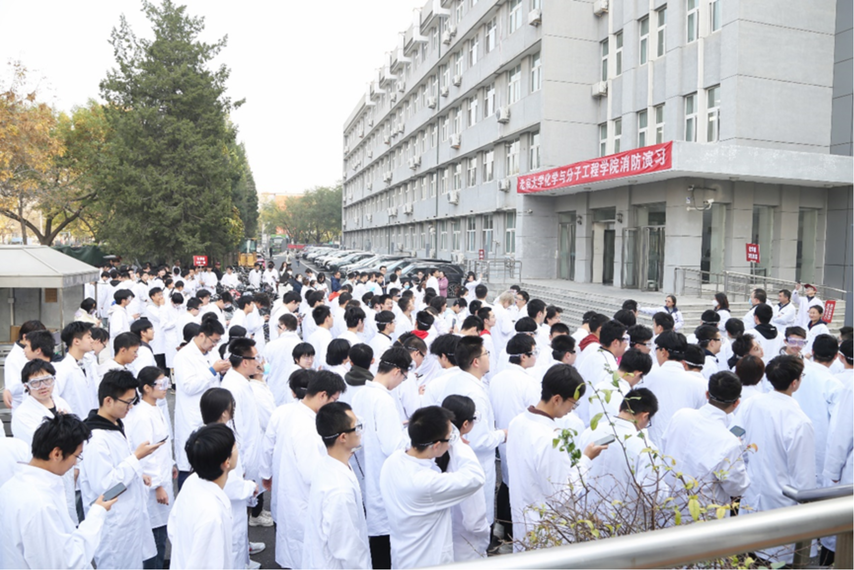 为增强全院师生的消防安全意识,提高师生应对火灾等突发事件的应急处置和自救逃生能力,2024年11月7日,化学学院在院内举行了消防疏散演习,共计1023名师生参加。