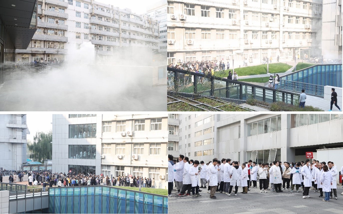 演习期间各单位实验室主任对全楼进行检查和巡视,确认安全后,师生返回实验室,演习共用时约20分钟。学校保卫部应急分队和校团委综合办对演习过程中所需的装备给予了大力支持。