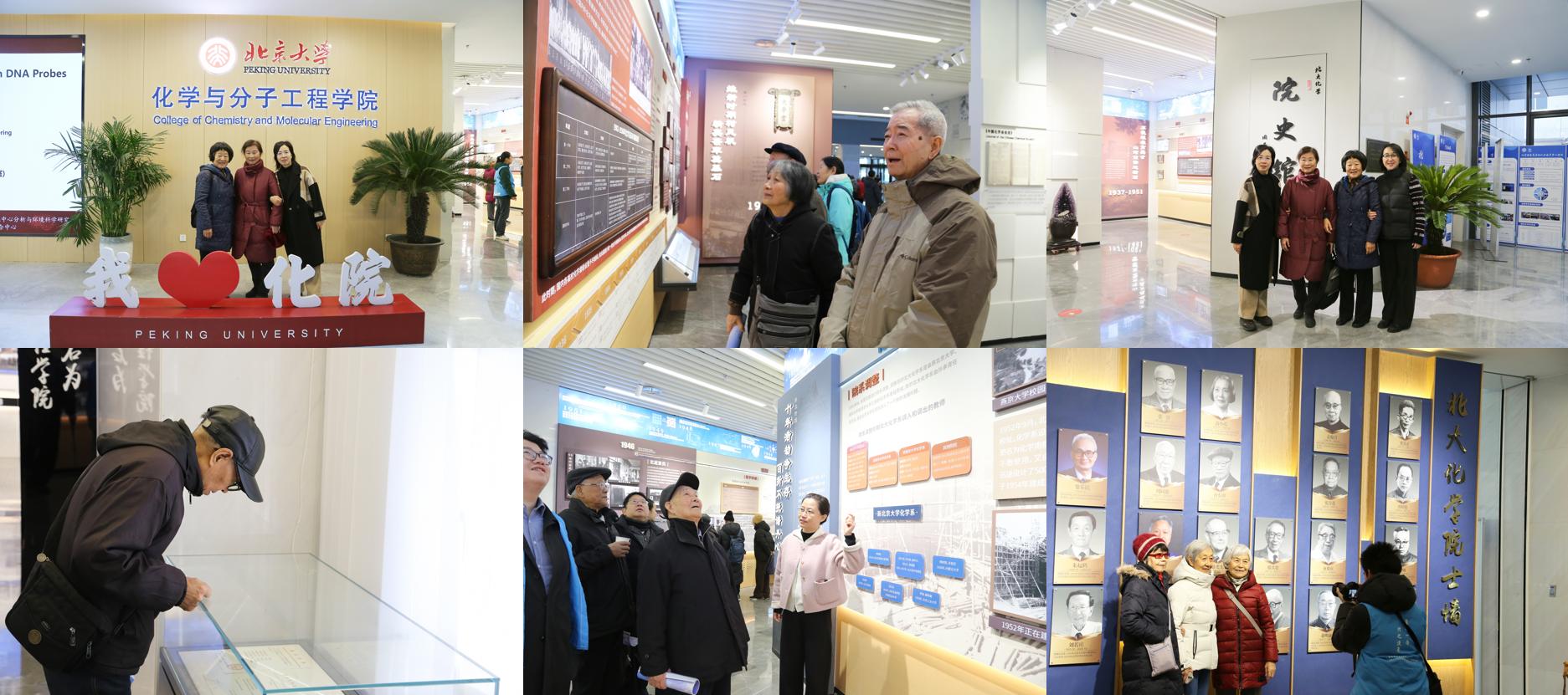 活动伊始,老师们在学生志愿者的引导下,从学院北门步入C区一层大厅。老教师们热情地相互拥抱和问候,现场气氛温馨而热烈,每位老师的脸上都洋溢着幸福的笑容,这些瞬间被定格成了永久的记忆。老师们参观了位于C区一层的院史馆、院士墙和教职工之家。院士墙与院史馆于12月12日揭幕设立,是对北大化学百年历史的回望,也将更好地传承和弘扬前辈们的学术精神。老师们沉浸在对岁月历史的回想和对恩师的深情怀念中,也表达了对学院未来发展的热切期盼。
