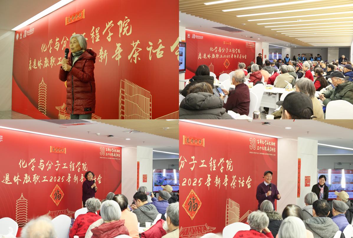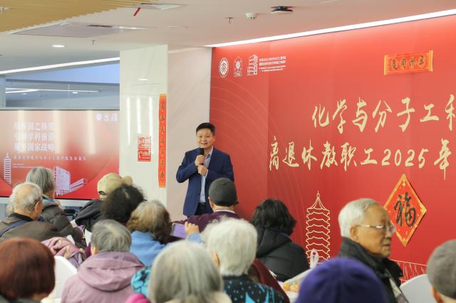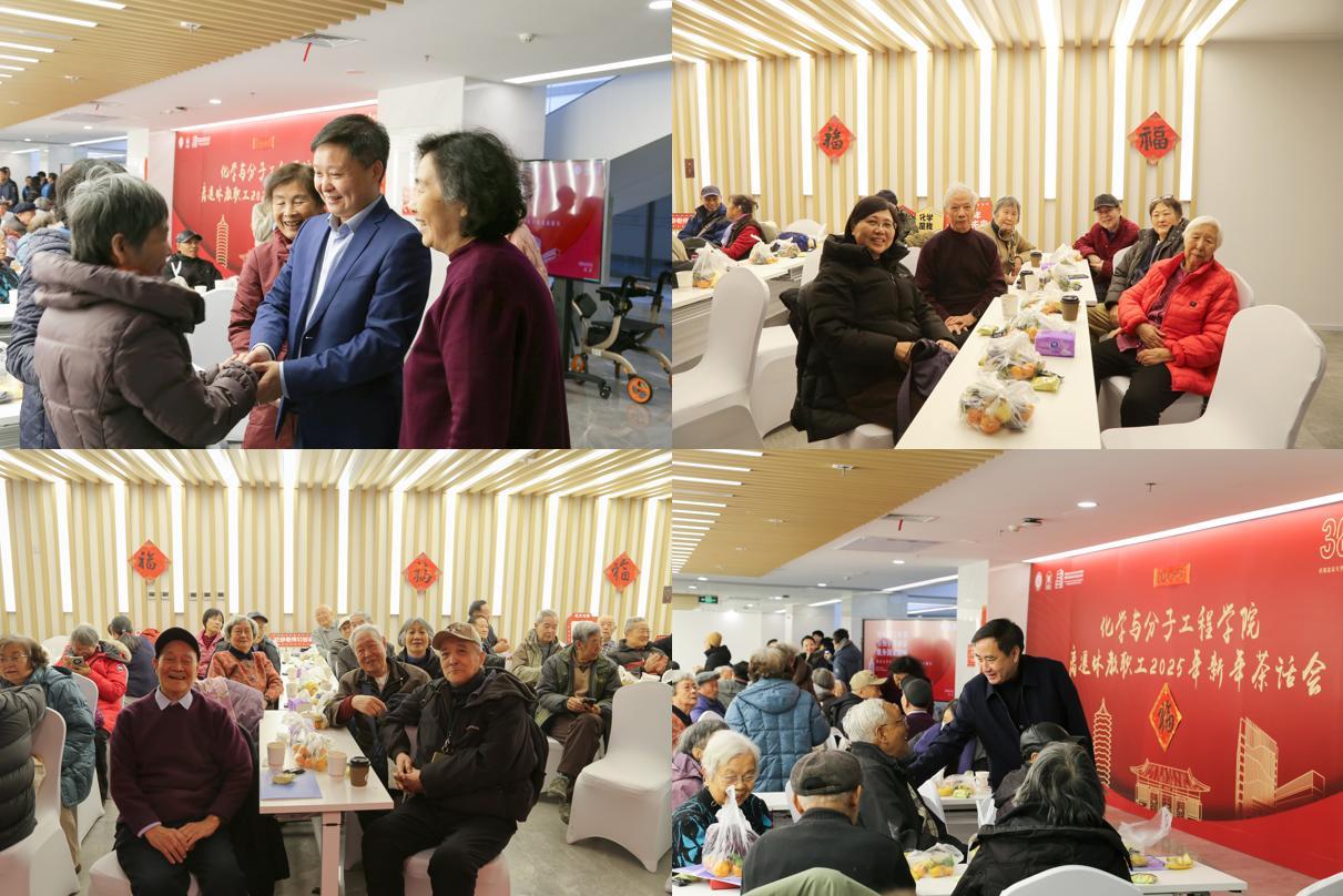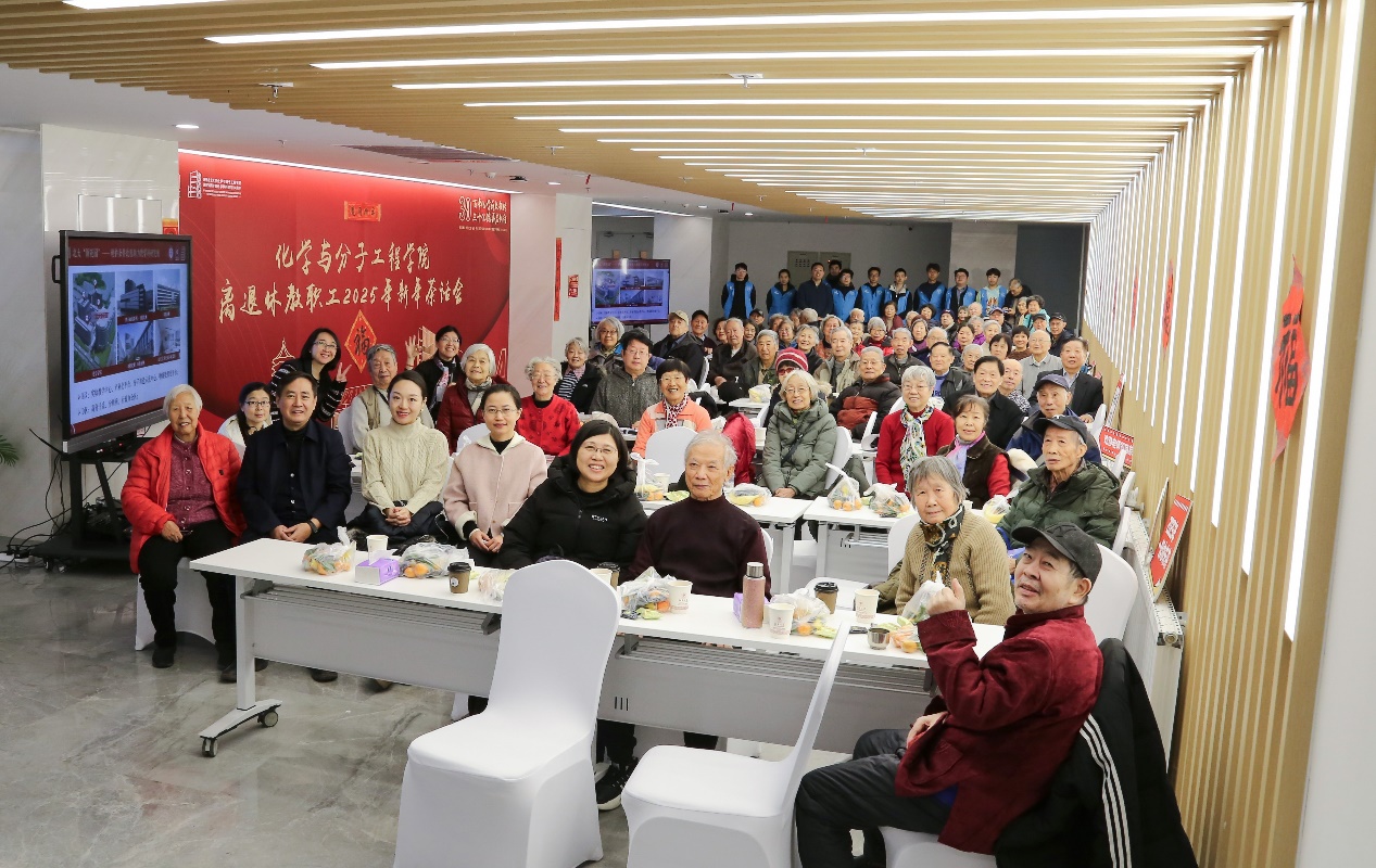 冬日暖阳下,新年渐进时。2024年12月24日上午,化学与分子工程学院举办院庆系列活动之2025年离退休教职工新年茶话会,学院党委书记裴坚,院长彭海琳,党委副书记高珍、邓安琪,在职教师代表与学院80余位离退休教职工欢聚一堂,共迎新年。茶话会由化学学院党委委员、分析测试中心常务副主任张莉主持。