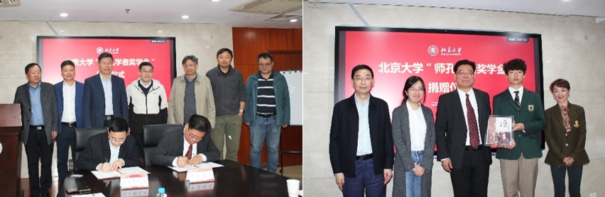 最后,在刘忠范院士、彭海琳院长等多位老师共同见证下,刘海超所长与刘伟总经理共同签署“师孔学者奖学金”捐赠协议,刘海超所长代表物化专业全体师生向刘总一家赠送纪念品,仪式在热烈的掌声中圆满结束。