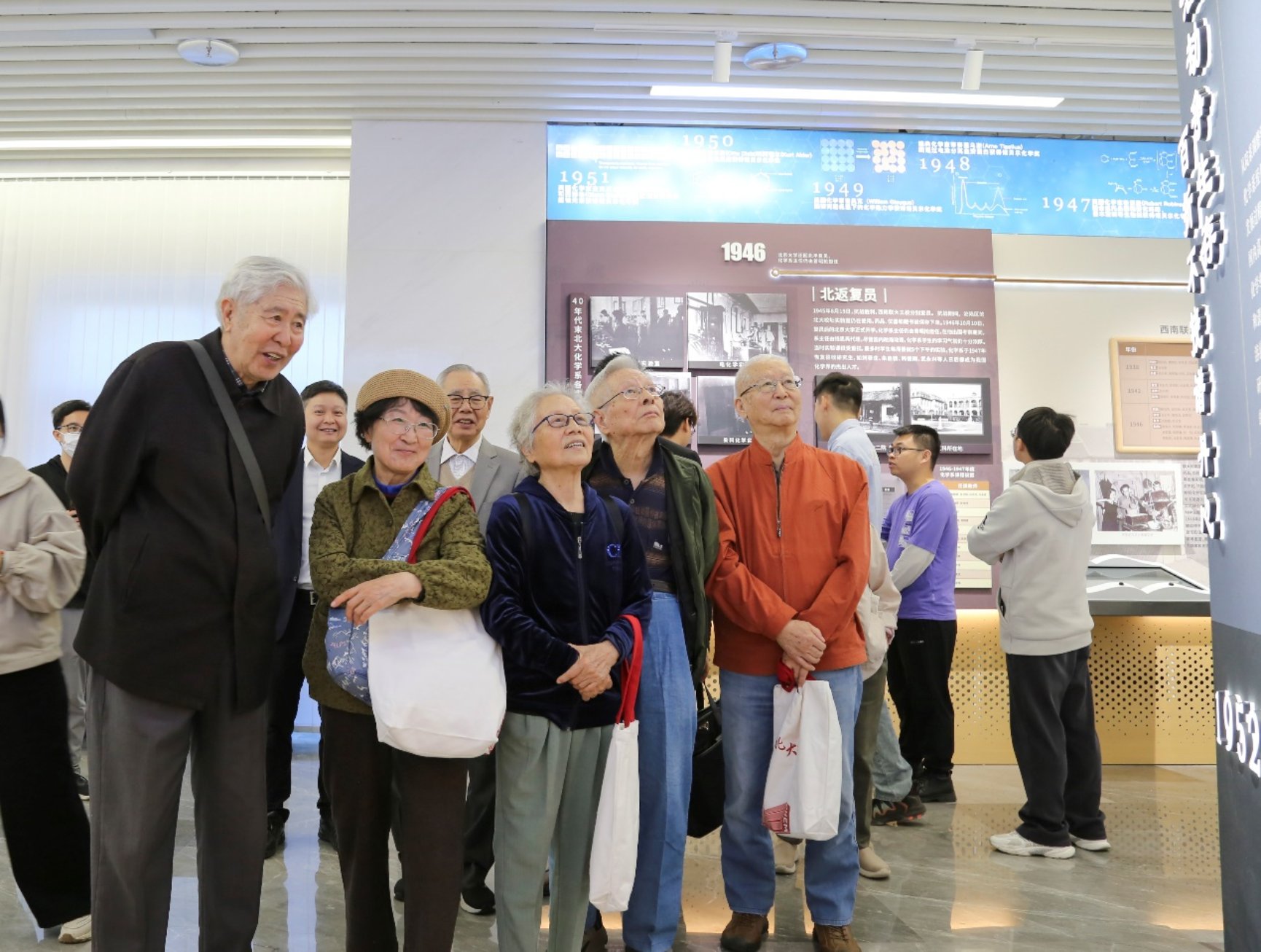 2024年12月,由化学学院1959级校友陈伯华先生及夫人李新昭女士慷慨捐资建设的院史馆正式竣工。在今年的校庆活动中,学院特意安排了院史馆参观讲解环节,通过珍贵史料与实物展品,系统梳理了化学学院的发展脉络。参观时,校友们时不时驻足流连,感受着历史中蕴含的北大化学精神和力量。