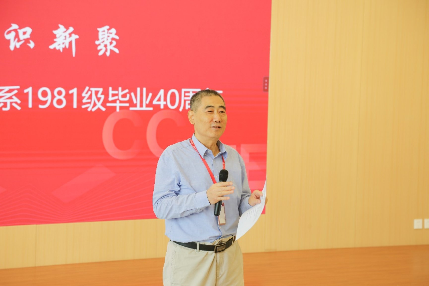 上午十点,活动准时开始,由1981级校友许少军主持。他首先阐释了本次活动主题“旧识新聚”的深厚寓意,抒发了81级同学对母校的感恩之心;随后,他代表与会校友向学院对活动的支持与帮助致以诚挚的谢意。