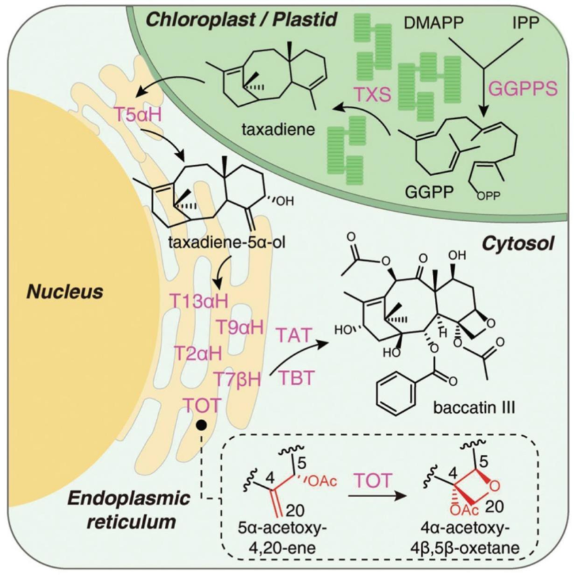 图3. 紫杉醇前体巴卡亭III分子的异源合成