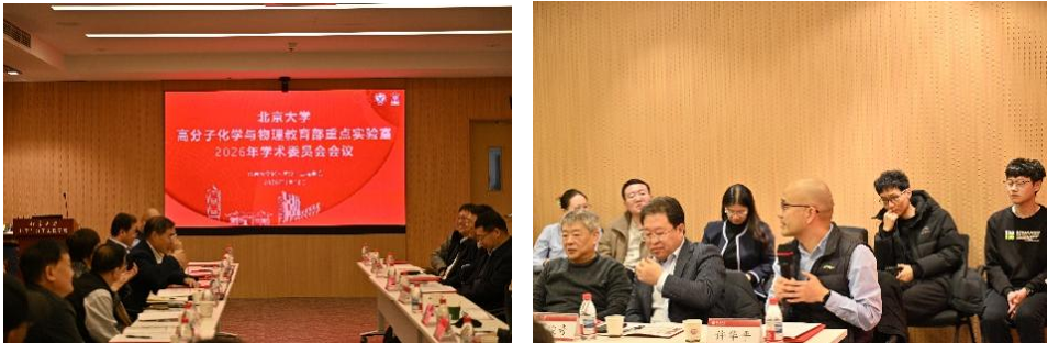 2026年1月16日,北京大学高分子化学与物理教育部重点实验室(以下简称“实验室”)学术委员会年度会议在京召开。出席此次会议的有学术委员会主任杨万泰院士,副主任陈学思院士、朱美芳院士,委员会成员周其凤院士、申有青院士、陈国颂教授、黄飞教授、蒋锡群教授、刘世勇教授、裴坚教授、孙俊奇教授、解孝林教授、宛新华教授、王树研究员、王献红研究员、许华平教授共计15位委员。北京大学科研部副部长张存群、化学学院党委书记裴坚教授等学校及学院领导、实验室骨干成员30余人参会交流。