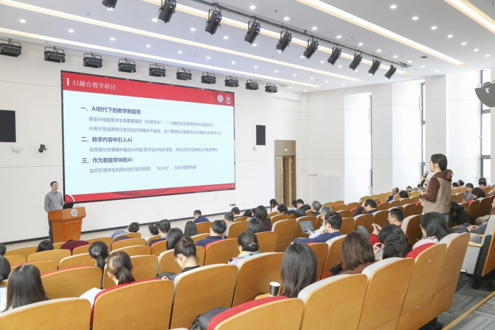 副院长邹鹏在教育教学研讨会上作专题报告。首先就近期本科生教学政策调整进行说明,随后与会教师围绕本研教学工作,聚焦人工智能(AI)与化学教育教学的深度融合,从教学理念革新、教学方式创新、实践教学建设、课程体系优化等多个角度展开深入研讨,现场气氛热烈。与会教师普遍认同,在充分利用AI提升教学效率的同时,应以“传道”为教学根本,注重培养学生扎实的专业素养和批判性思维。学院将以此次研讨为契机,鼓励教师积极参与教学改革,持续支持探索AI赋能教学的新模式,推动人才培养质量的持续提升。