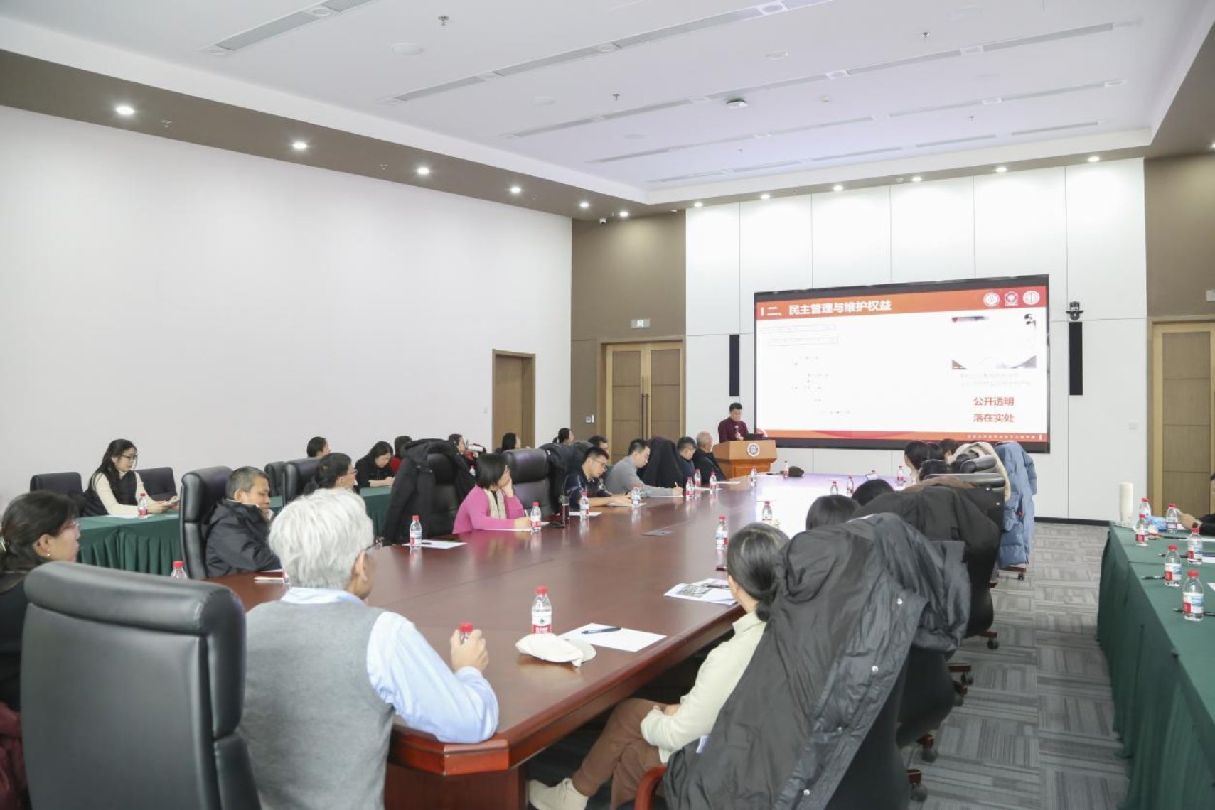 1月18日上午,学院第三届教代会第六次全体会议如期举行。会议由教代会执委会主任委员甘良兵主持,学院领导班子及教代会代表参会。会上,工会副主席黄军作2025年度工会工作报告,从机制建设、党群沟通、职工服务、活动开展、经费规范等方面总结了工会工作。在讨论环节,代表们围绕学院工作报告、工会工作报告,聚焦工作环境与设施改善、博士后与研究生培养、体检福利等教职工关心的热点问题积极建言献策,提出意见建议。