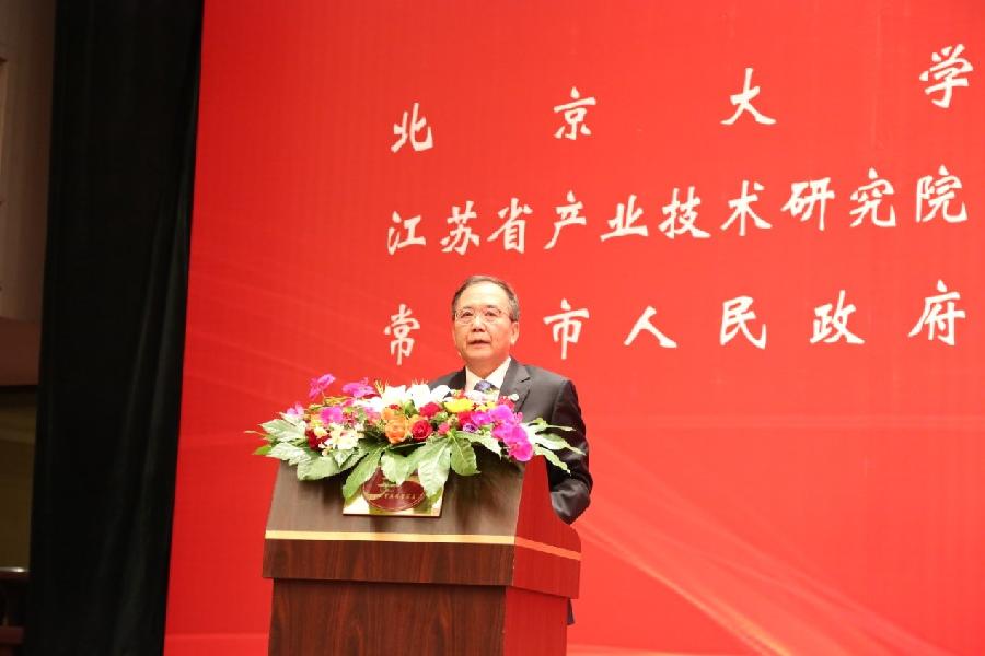 仪式开始首先由常熟市委书记王飏致辞,王飏同志代表常熟市委、市政府向产研院的签约表示祝贺,并预祝校地产学研结合发展顺利、成果丰硕。