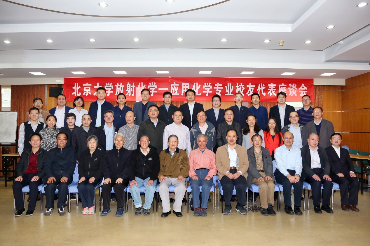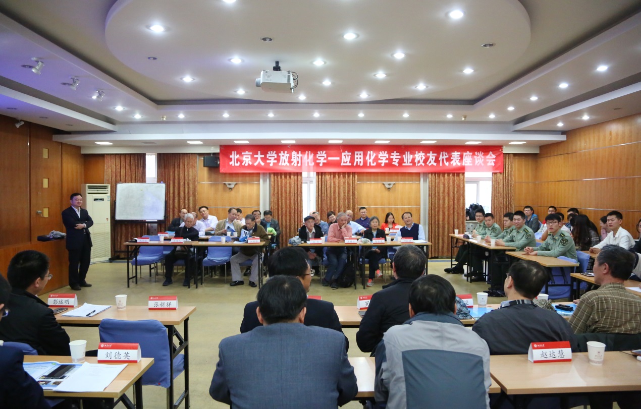 北京大学百廿周年校庆前夕,放射化学-应用化学专业校友代表座谈会于4月21日上午成功举行。老教授代表、校友代表、在职教师代表、研究生和国防生代表共70余人欢聚一堂,共商学科发展大计,共同庆祝北京大学建校120周年。出席座谈会的校友代表有:国防科技大学退休教授周世光(59届),中国核工业集团公司原军工部主任李景(78级),中国核工业集团公司发展规划部主任毋涛(78级),北京大学环境科学与工程学院院长朱彤(79级),中国原子能科学研究院同位素研究所所长罗志福(79级),郑州大学副校长屈凌波(80级),中国石油化工科学研究院副总工程师宗保宁(81级),北京大学客座教授、苏州天演药业总裁兼首席执行官罗培志(82级),环保部对外合作中心副主任肖学智(82级),北京绿棉科技有限公司总经理卢晓红(82级),中国原子能科学研究院院长万刚(83级),中国工程物理研究院核物理与化学研究所所长彭述明(87级),北京生命科学研究所副所长、中国科学院院士邵峰(91级),清华大学教授潘宪明(81硕),中国科学院大学教授何裕建(89硕),北京化工研究院原副院长、北京大学客座教授乔金梁(93博),北京大学考古文博学院副院长吴小红(93博)等。