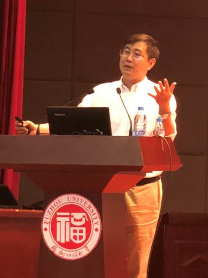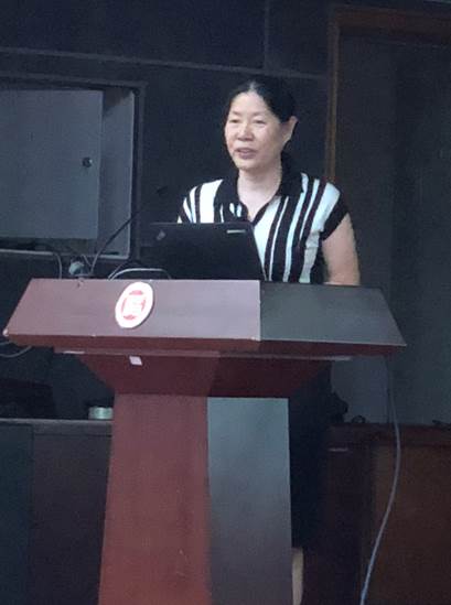 左:裴坚老师作大会报告 右:杨展澜老师作教学研讨专题报告