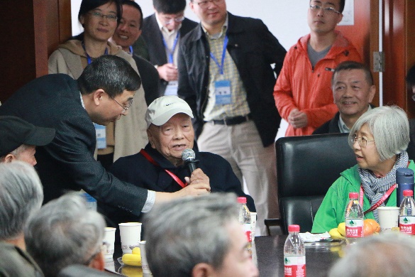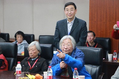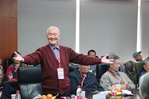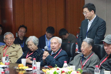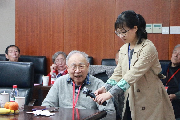 之后,刘海超老师主持了讨论环节。周公度老师率先发言,表达了自己对物化所这个温暖大家庭的肯定和期盼,物化所能取得今天的成就,离不开所有老师们的团结努力,互相帮助。99岁高龄的唐有祺院士也加入到了热烈的讨论中,表示自己对物化所的温馨和睦的和拼搏进取的精神非常感动和自豪。刘兴云老师感慨地回顾了北大物化的发展经历,对物化现在取得的成表示高度肯定和赞扬,希望看到北大物化在所有在职老师们的努力下能够取得更大的成就。蔡生民、杨永年、佘励勤、褚德萤等退休老师们也先后发言,对物化专业的发展和在职教师提出了中肯的建议和殷切的希望。最后,刘海超老师代表物化专业的全体教师对老先生们的嘱托与叮咛表示衷心感谢,并表示尽最大努力做好教学科研工作,不负前辈的期望。看到物化专业发生的可喜变化,退休的老师们非常高兴。