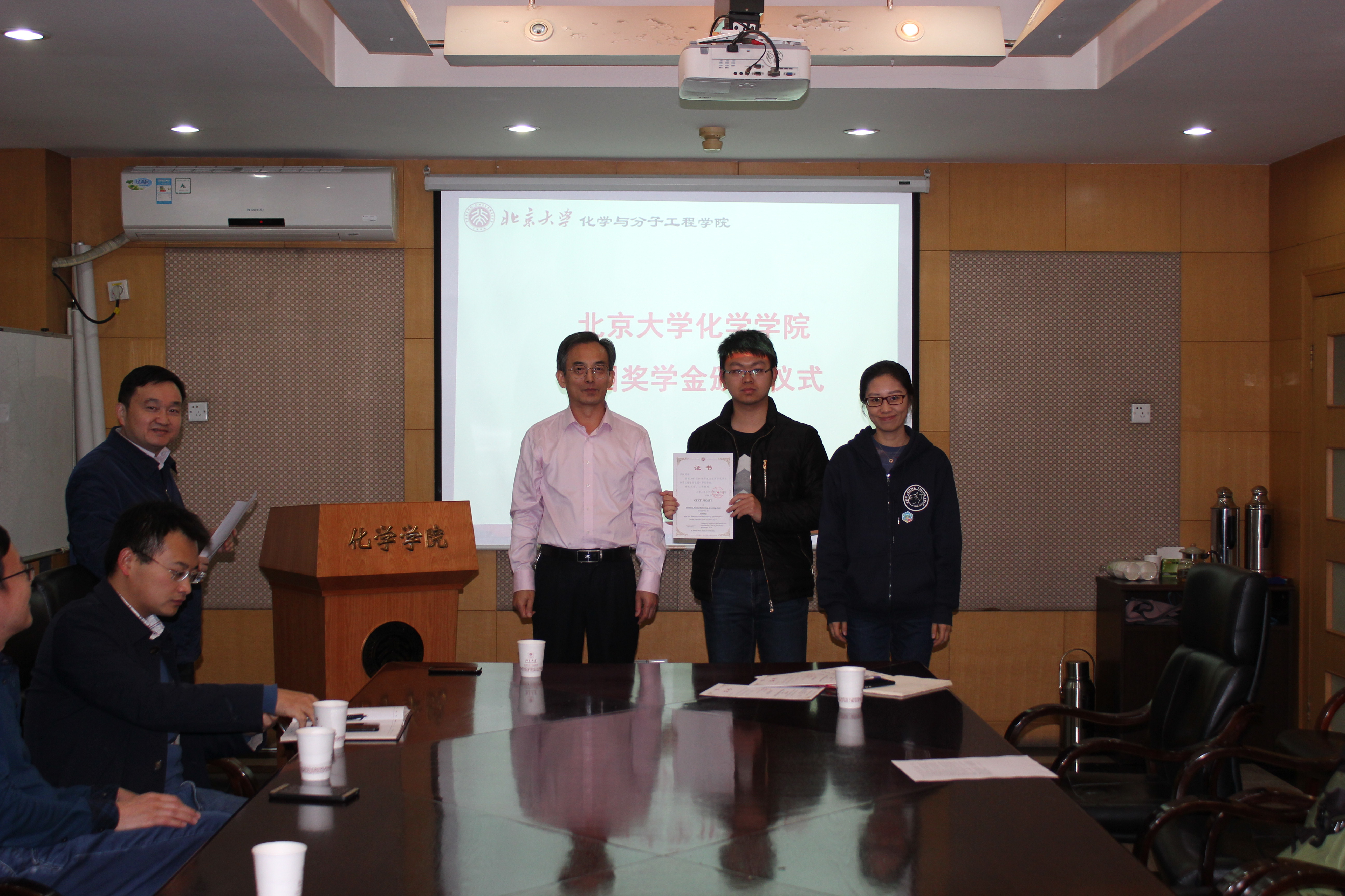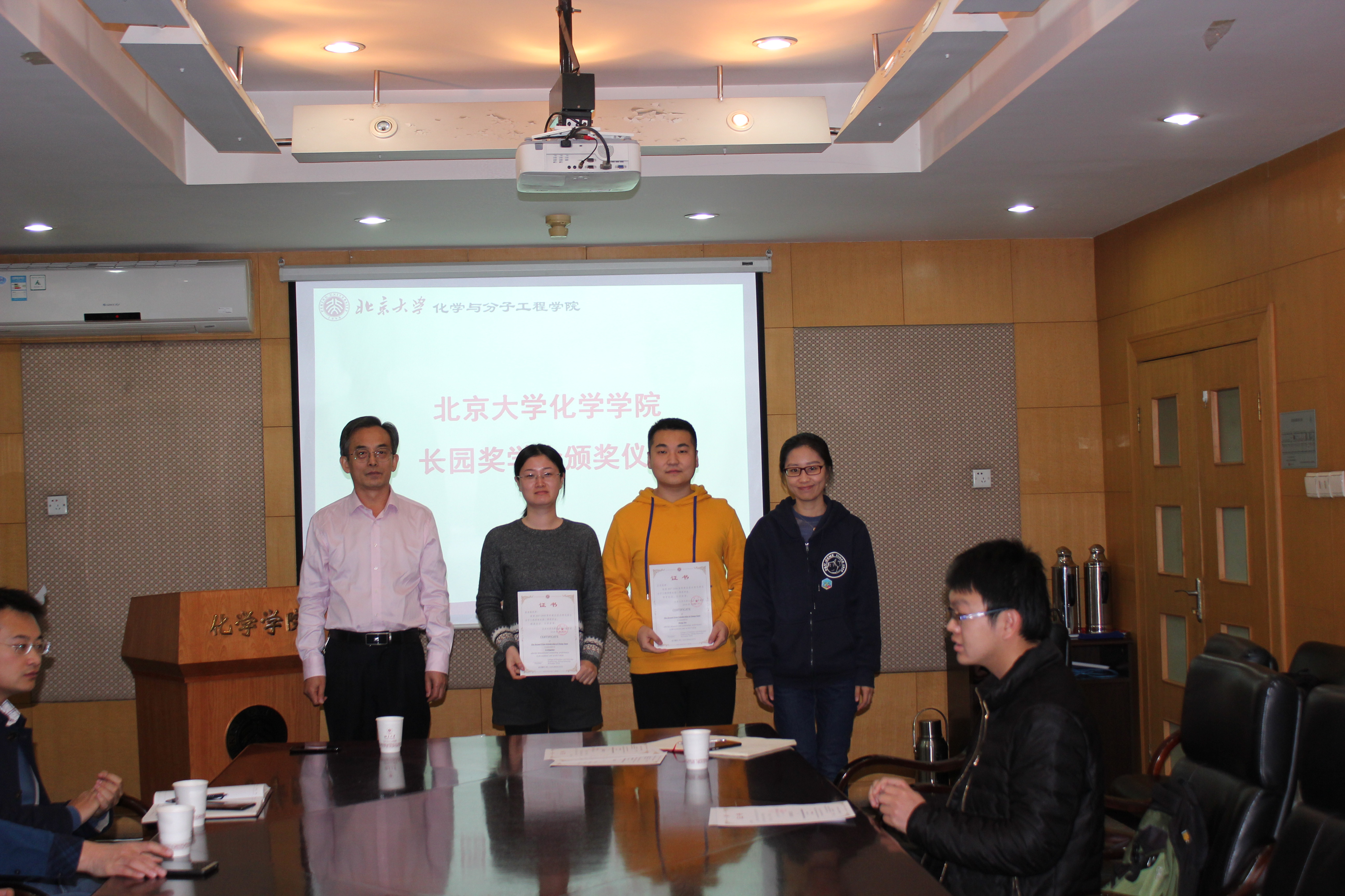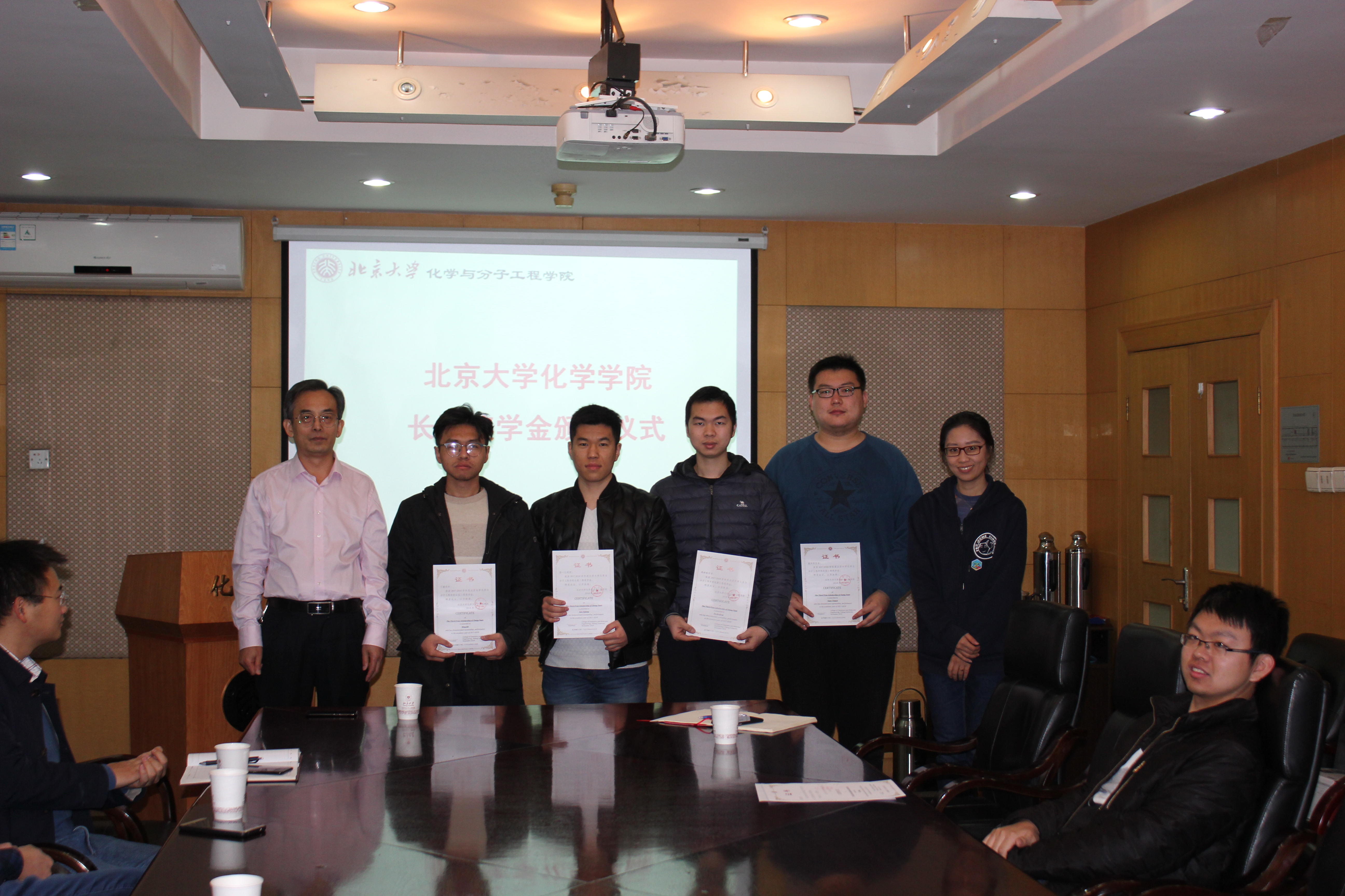 2018年11月21日,阳光明媚,微风习习,第12届长园奖学金颁奖仪式在北京大学化学学院B229成功举行。参加本次颁奖仪式的有深圳长园集团股份有限公司研发中心主任赵成刚博士,化学学院团委书记张舒老师,应用化学系沈兴海教授、翟茂林教授以及部分教职工和研究生。