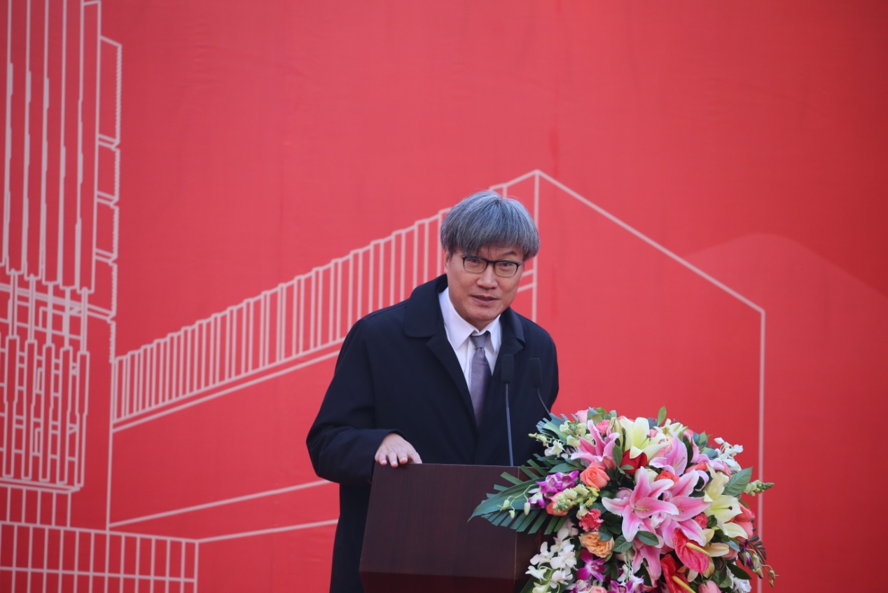 上午九时,“E区大楼”奠基仪式正式开始,化学学院副院长陈兴教授主持仪式。北京大学副校长王博教授首先致辞,他在致辞中代表学校向化学学院“E区大楼”奠基致以最热烈的祝贺,向厉伟校友等捐赠人表示了由衷的感谢。同时,寄语学院,希望学院继续发扬优良学术传统,为广大师生创造更良好的学习、科研环境,创造更多的“化学反应”,创造大师辈出的新局面。