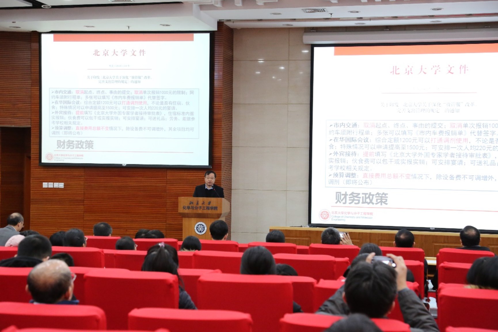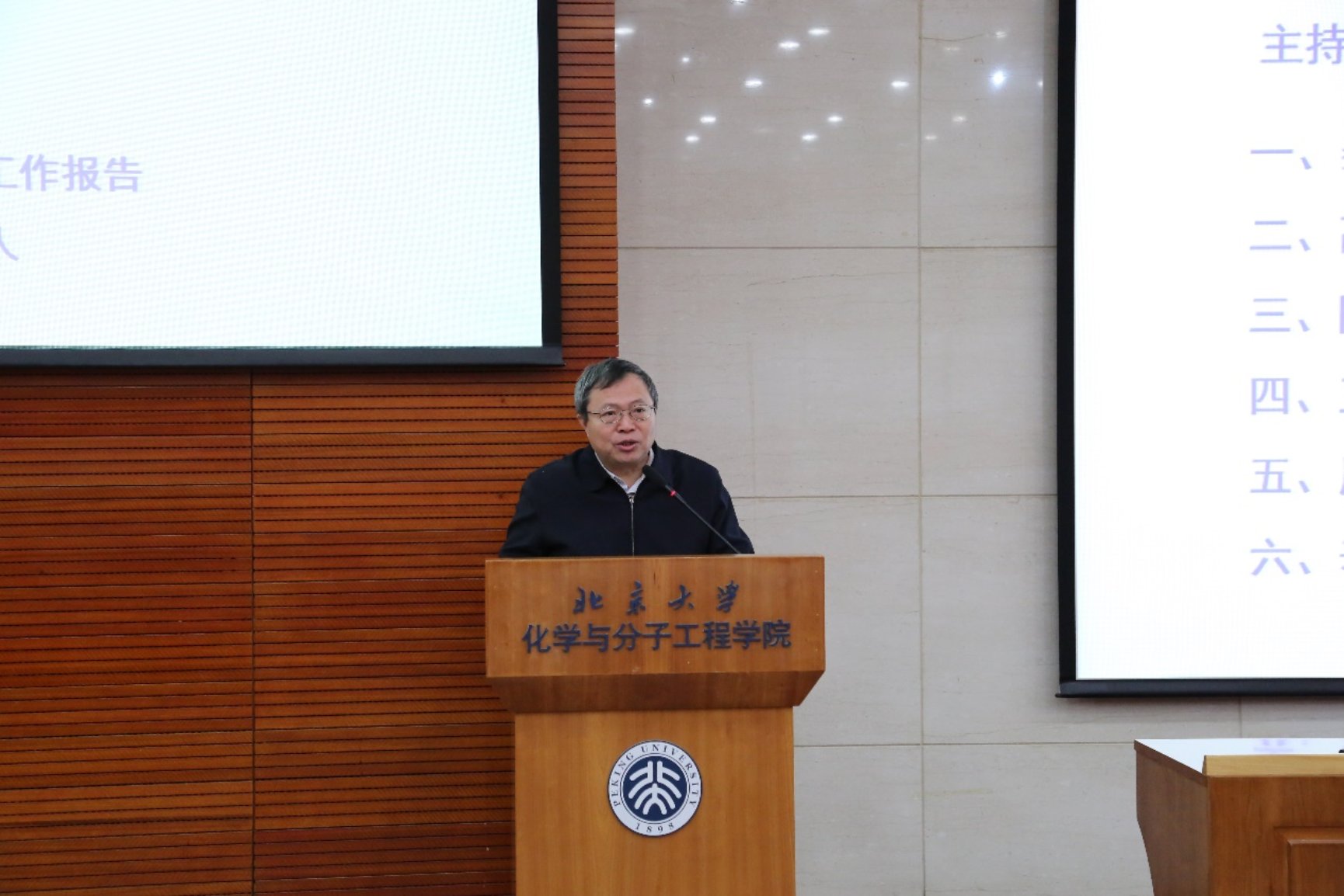 2019年1月17日上午,北京大学化学与分子工程学院新一届行政班子宣布会暨年度总结大会在化学楼A204百廿纪念报告厅召开。北京大学副校长、总务长王仰麟,北京大学党委组织部部长柴真出席会议。会议由化学学院党委书记马玉国主持。