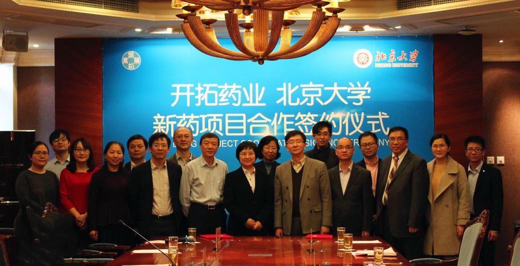 2019年3月6日,北京大学与苏州开拓药业股份有限公司(“开拓药业”)签订技术转让协议,将北京大学化学与分子工程学院来鲁华教授课题组研发的c-Myc蛋白抑制剂转让给开拓药业。北京大学科技开发部、化学学院领导与协议双方代表共同出席了签约仪式。