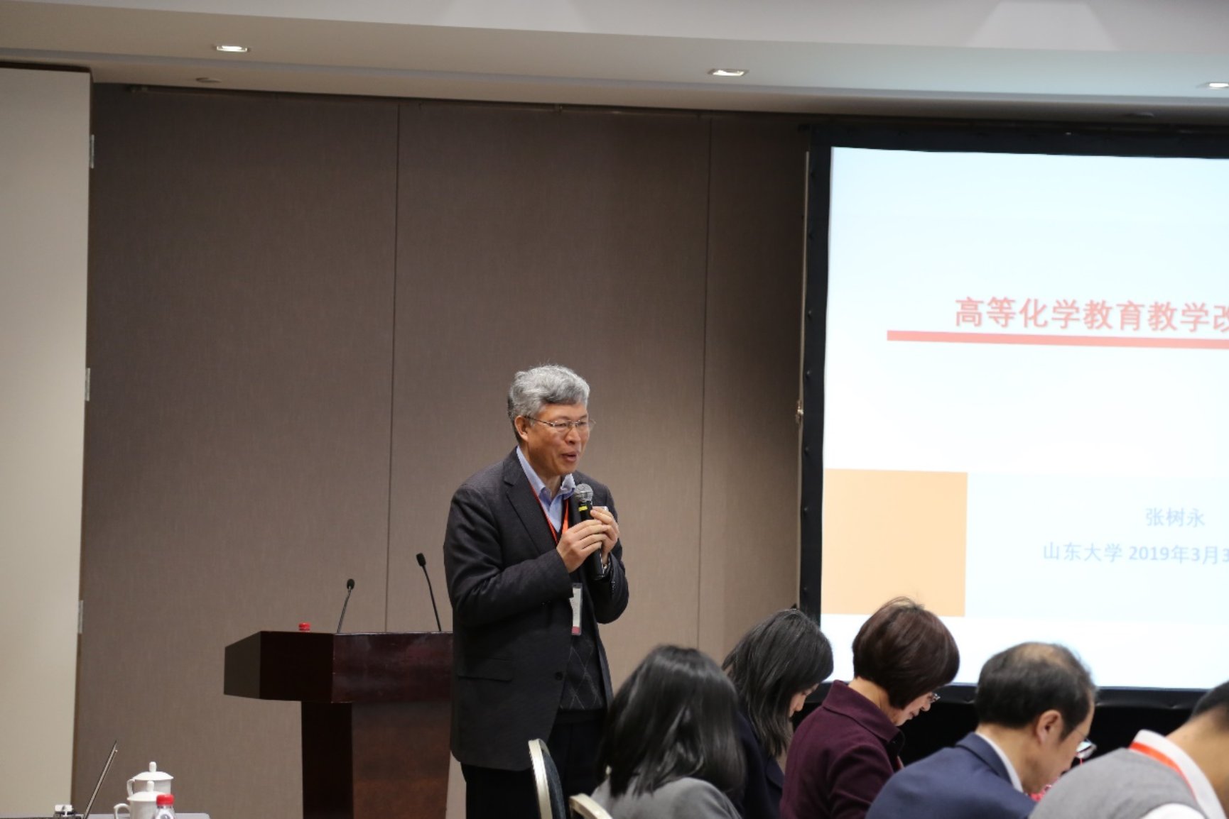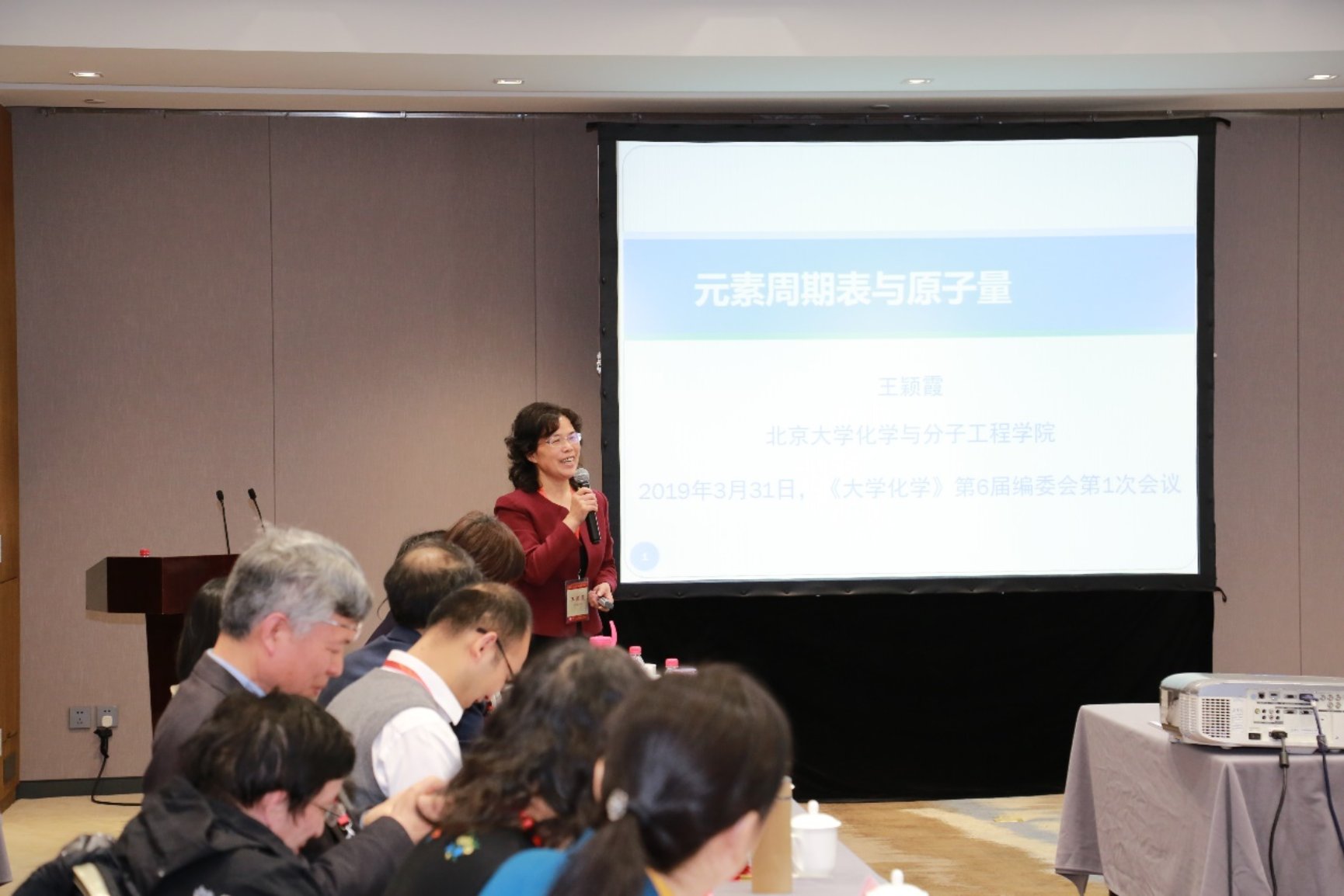 裴坚教授在会议上作了“大学化学33年:历史、现状与未来”的报告,回顾了《大学化学》的创刊历史、介绍了30余年来刊物所取得的成绩,分析了刊物面临的挑战和机遇,号召新一届编委会共同努力把刊物办得更好!张树永副主编作了“高等化学教育教学改革:问题与方向”的报告,就当前化学教育教学面临的新任务新挑战、化学教育的国际等效、化学教育层次与挑战性、化学与新工科建设等方面发表了自己独到深入的见解和观点。王颖霞主编则为大家介绍了元素周期表与原子量的历史由来及演变,针对大家感兴趣的一些问题进行了阐释。编辑部副主任袁梅博士简要地介绍了“《大学化学》编委会章程”,使编委会委员更加明确职责。