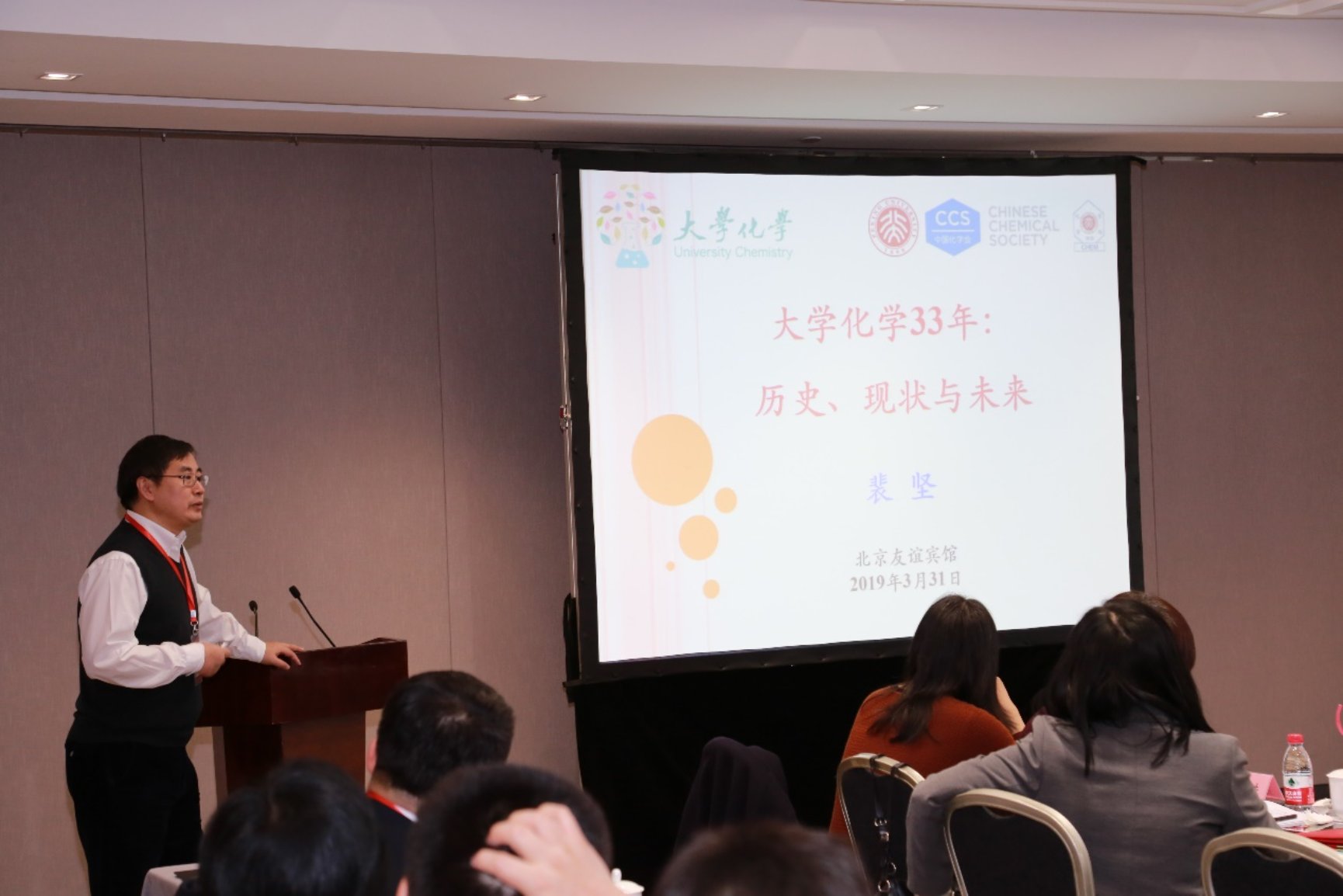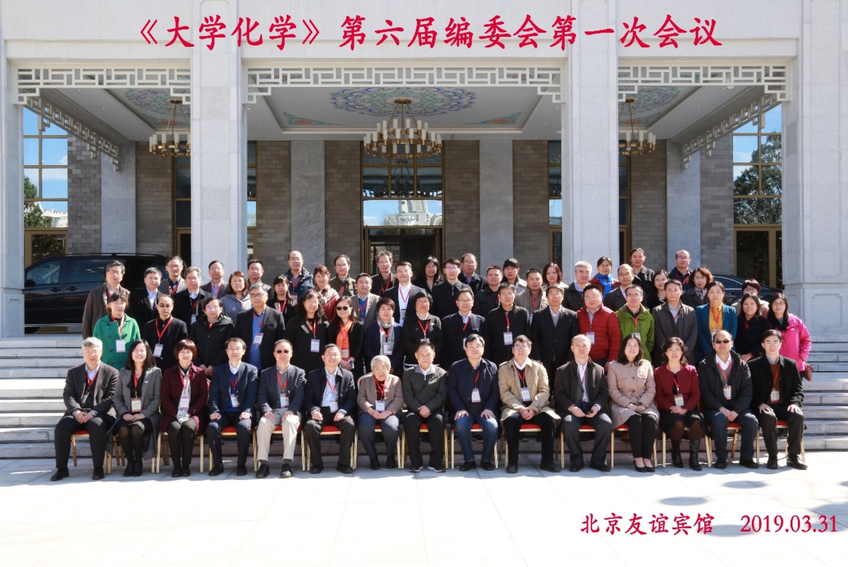《大学化学》第六届编委会第一次会议于2019年3月31日在北京友谊宾馆召开。中国化学会常务副秘书长郑素萍博士,《大学化学》顾问高松院士、周其林院士、郭子建院士、华彤文教授、段连运教授,北京大学化学与分子工程学院党委书记马玉国教授、副院长彭海琳教授,副院长、新任主编王颖霞教授,编委及编辑部工作人员共计62人出席会议。