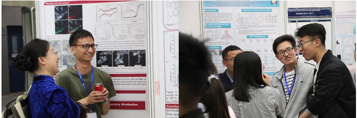 5月18日晚,本次论坛在化学学院A区组织了墙报交流活动,展示了参会同学的墙报。旅途的疲惫挡不住同学们交流的热情,伴着悠扬的音乐,各位参会者畅谈自己的学术成果、进行学术思想碰撞,化学院物化专业的老师们也与展示墙报的同学进行了交流,对同学们的精彩墙报展示表示赞赏。
