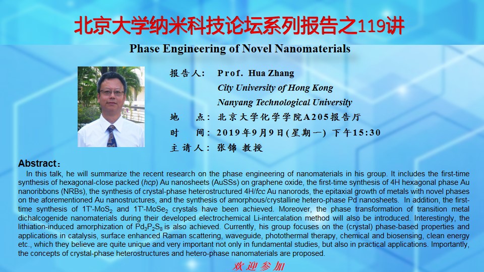 【北京大学纳米科技论坛系列报告之119讲】Phase Engineering of Novel Nanomaterials