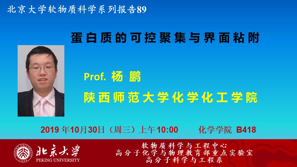 【北京大学软物质科学系列报告89】蛋白质的可控聚集与界面粘附