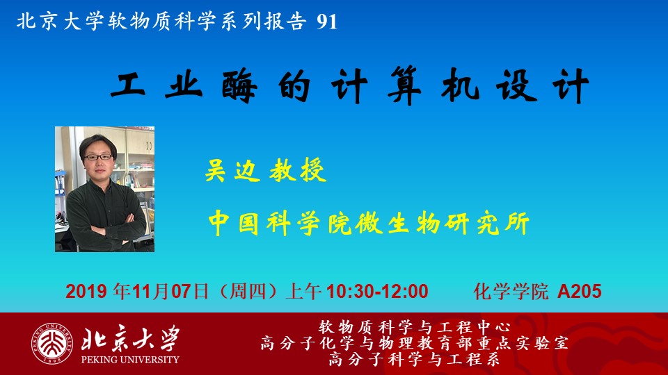 【北京大学软物质科学系列报告 91】工业酶的计算机设计